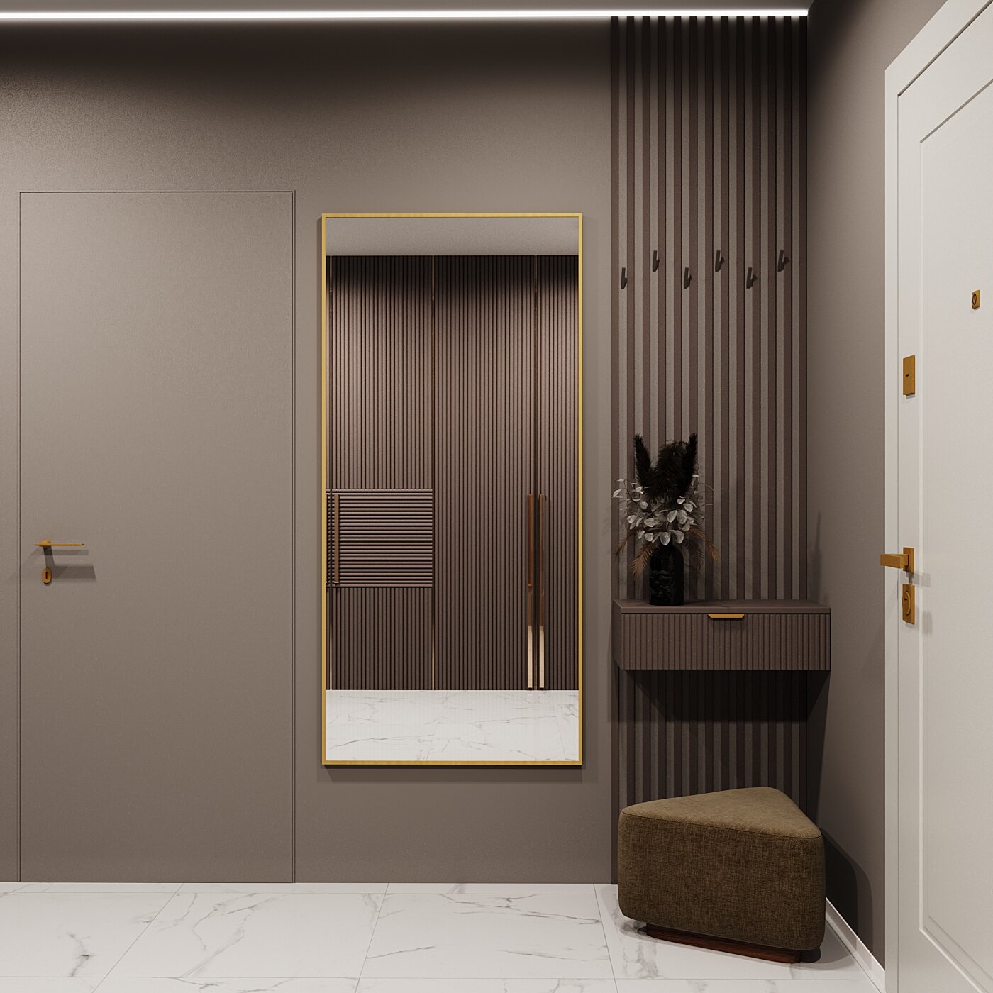 Зеркало с подсветкой в алюминиевой раме настенное Market-house 180х60 см. Свет: Нейтральный Белый 6000К. Золото