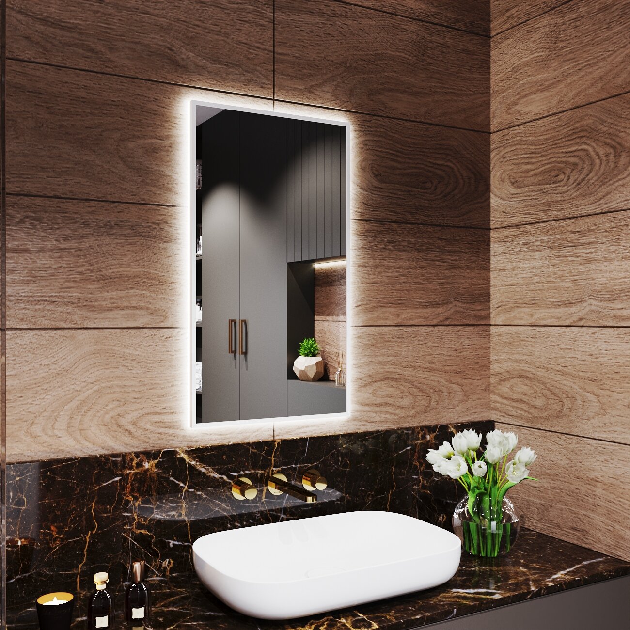Зеркало с подсветкой в алюминиевой раме настенное Market-house 60х50 см. Свет: Нейтральный белый 6000К. Белое