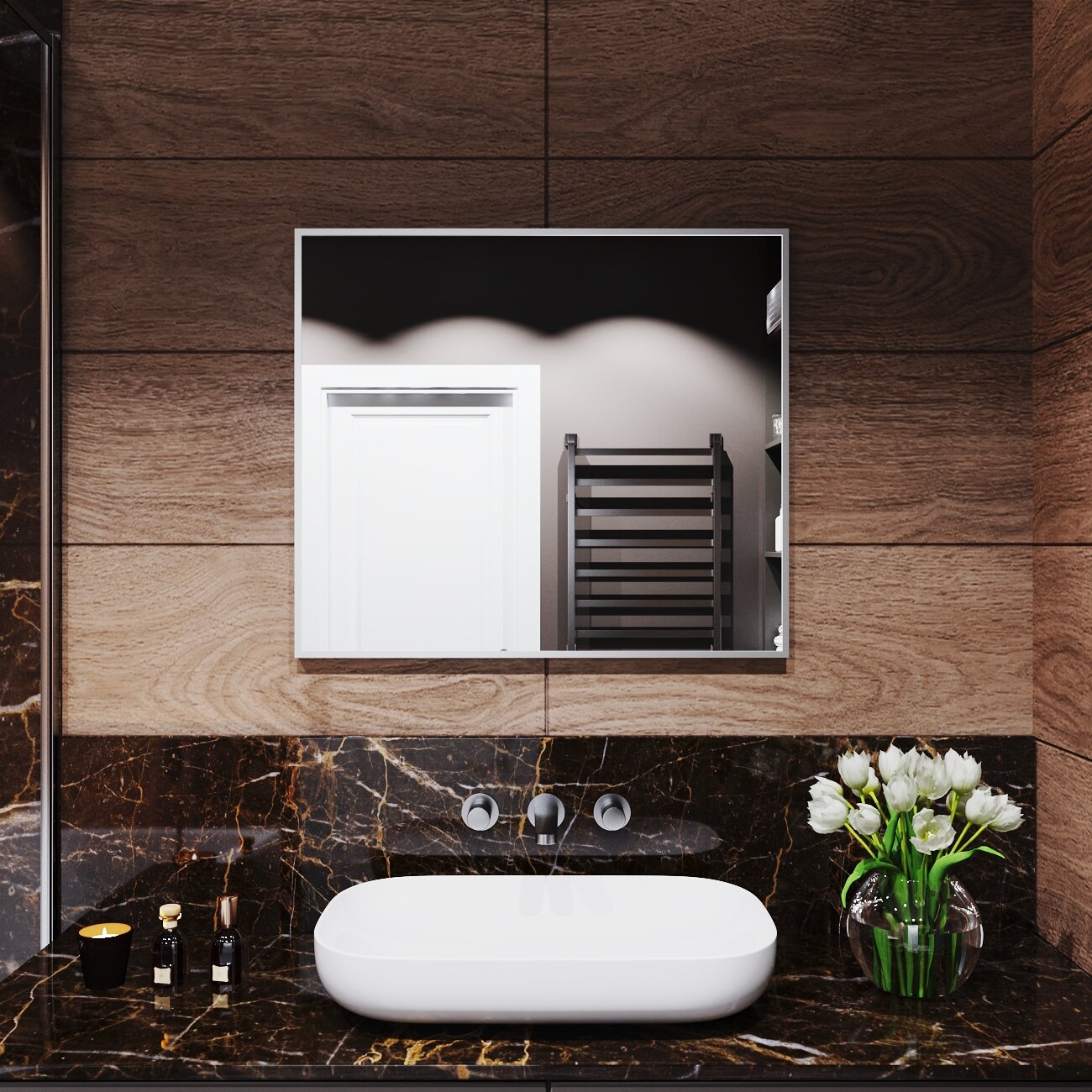 Зеркало с подсветкой в алюминиевой раме настенное Market-house 80х70 см. Свет: Нейтральный Белый 6000К. Серебро