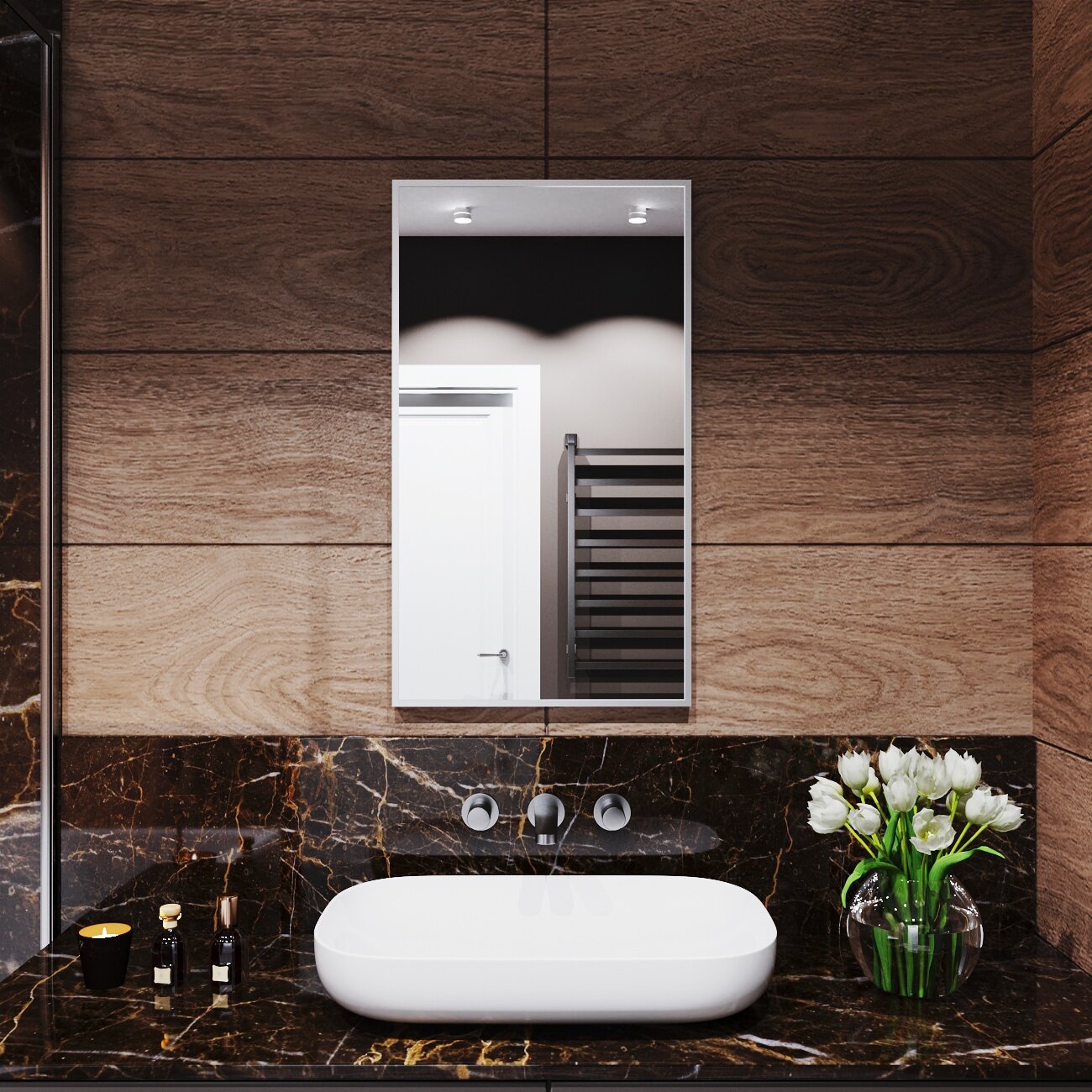 Зеркало с подсветкой в алюминиевой раме настенное Market-house 80х40 см. Свет: Нейтральный Белый 6000К. Серебро