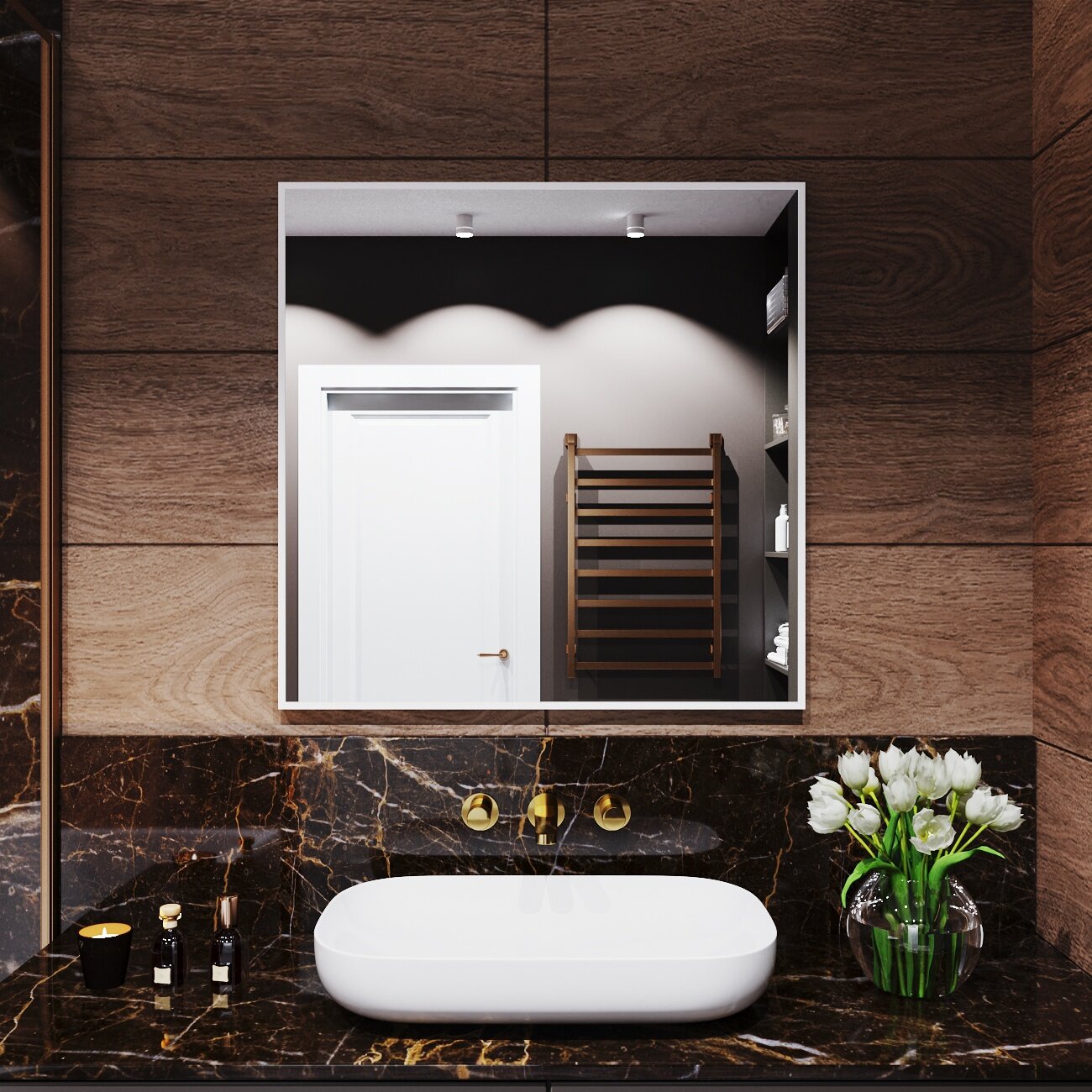 Купить Зеркало с подсветкой в алюминиевой раме настенное Market-house 80х80 см. Свет: Нейтральный Белый 6000К. Белое