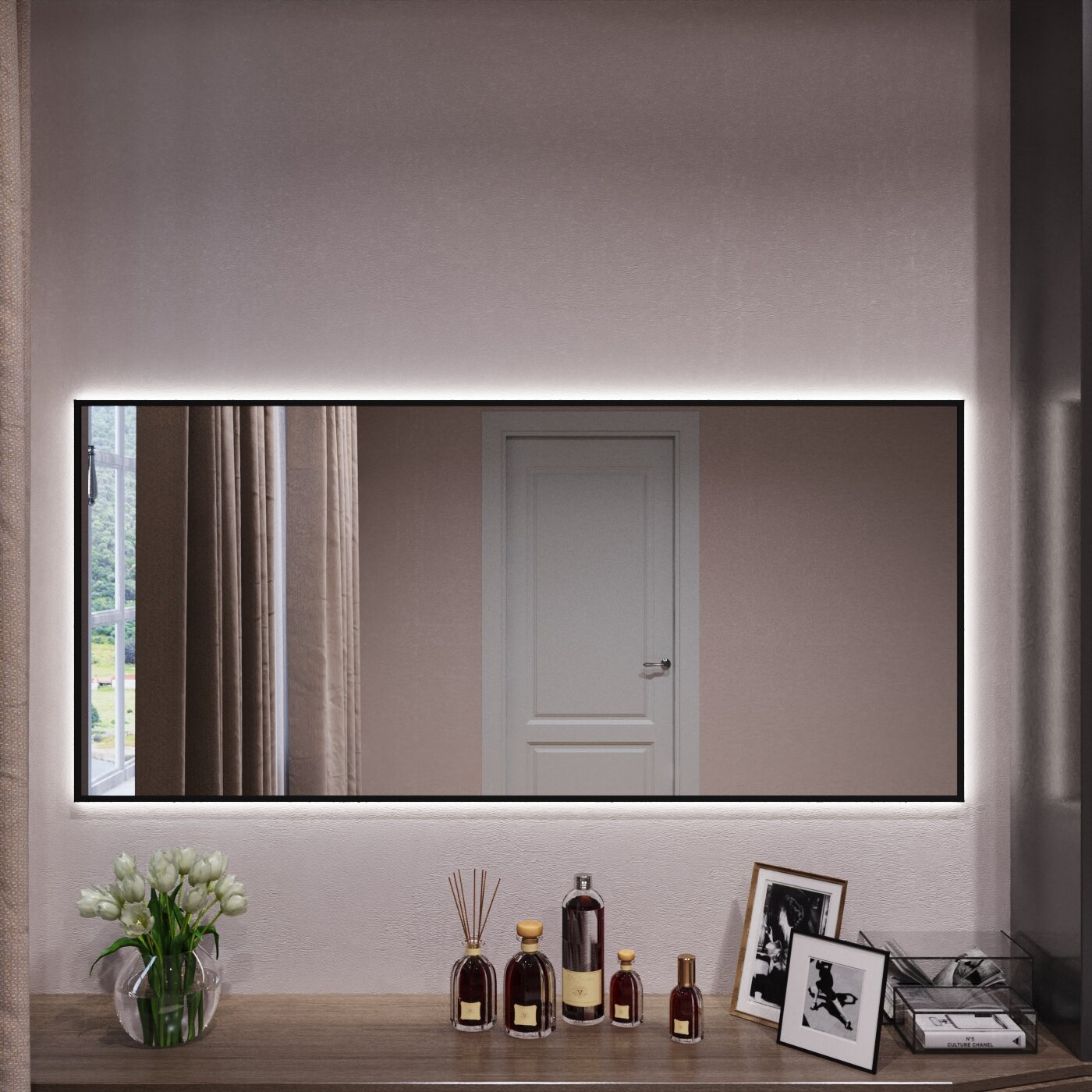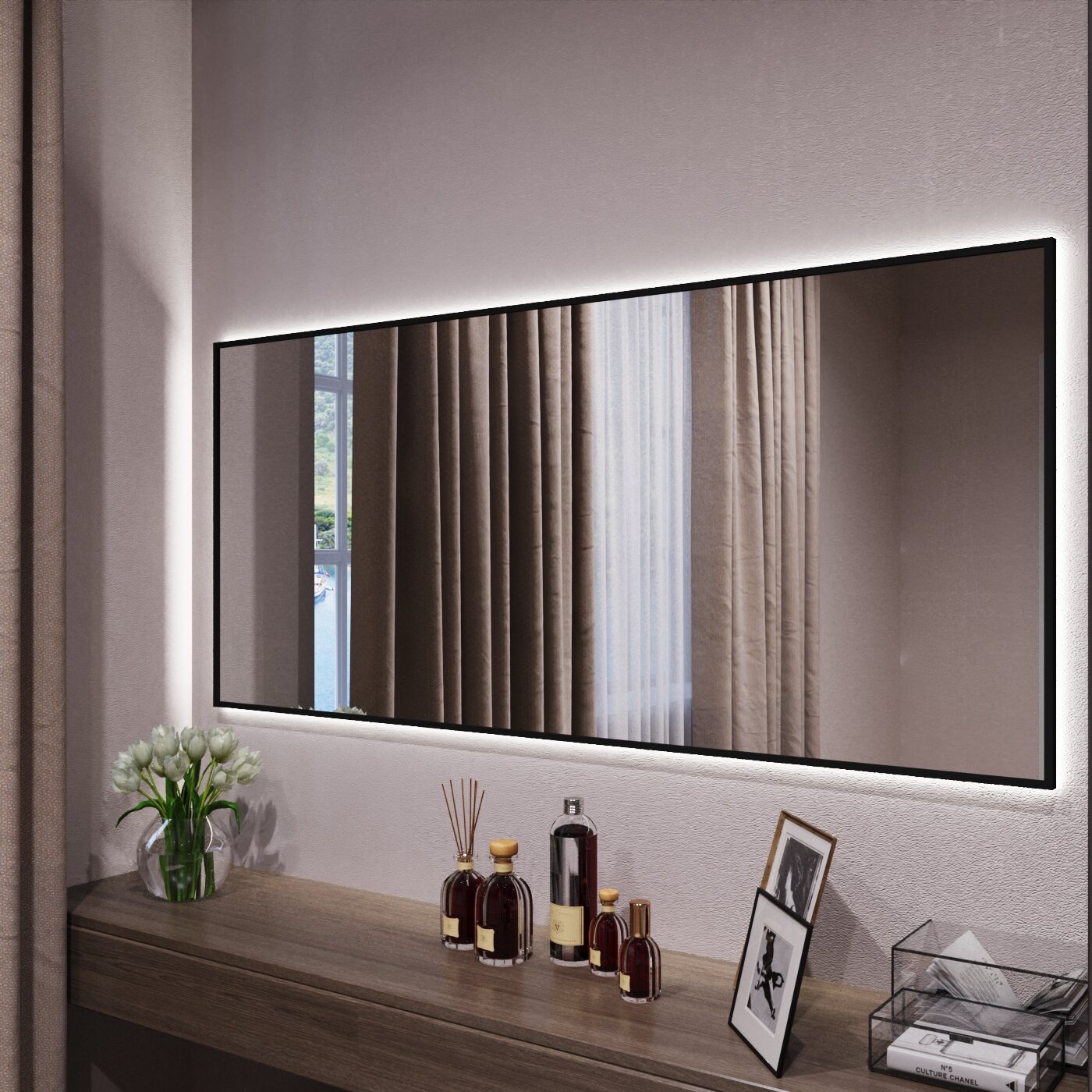 СохранитьЗеркало с подсветкой в алюминиевой раме настенное Market-house 140х60 см. Свет: Нейтральный Белый 6000К. Черное интересное: