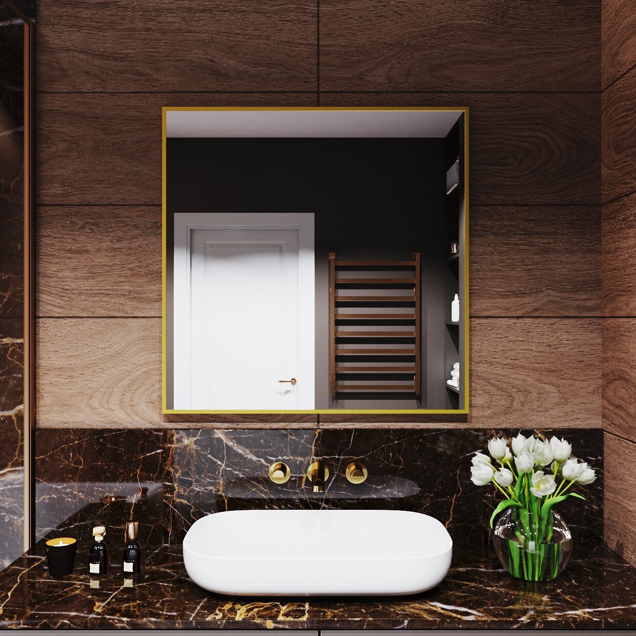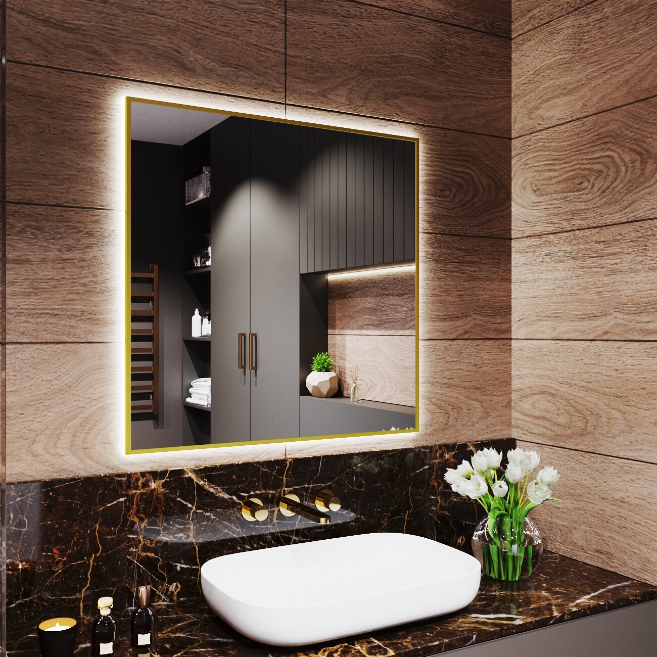 Зеркало с подсветкой в алюминиевой раме настенное Market-house 90х80 см. Свет: Нейтральный белый 6000К. Золото