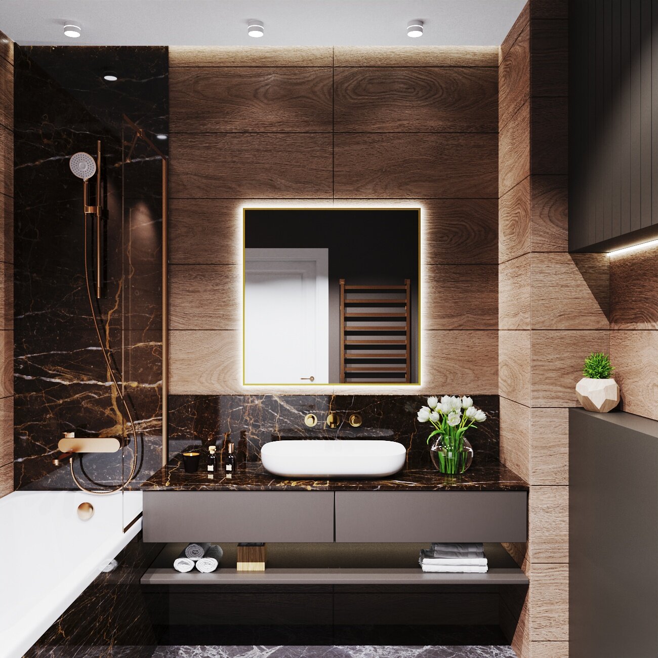 СохранитьЗеркало с подсветкой в алюминиевой раме настенное Market-house 80х80 см. Свет: Нейтральный Белый 6000К. Золото интересное: