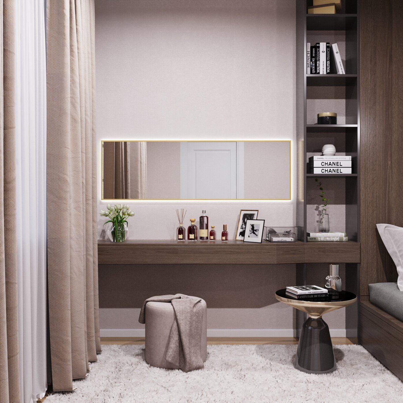 СохранитьЗеркало с подсветкой в алюминиевой раме настенное Market-house 140х40 см. Свет: Нейтральный Белый 6000К. Золото интересное: