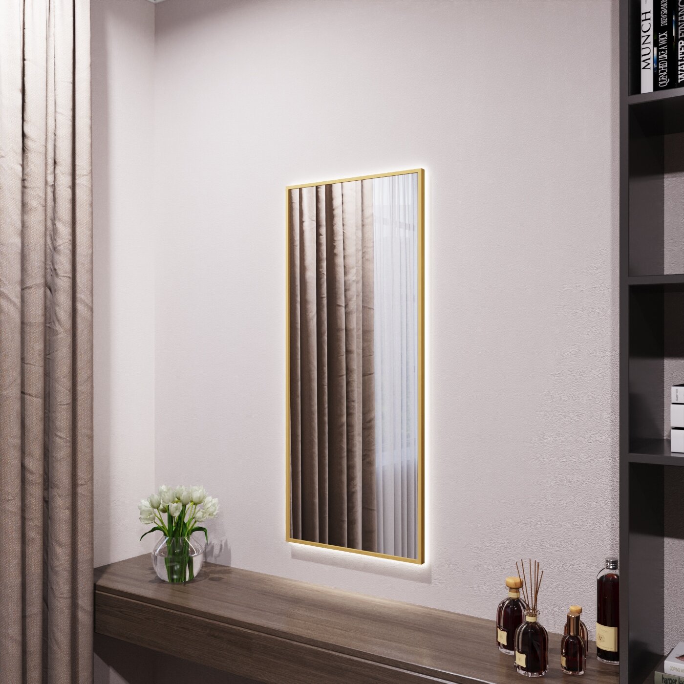 Зеркало с подсветкой в алюминиевой раме настенное Market-house 80х40 см. Свет: Нейтральный Белый 6000К. Золото