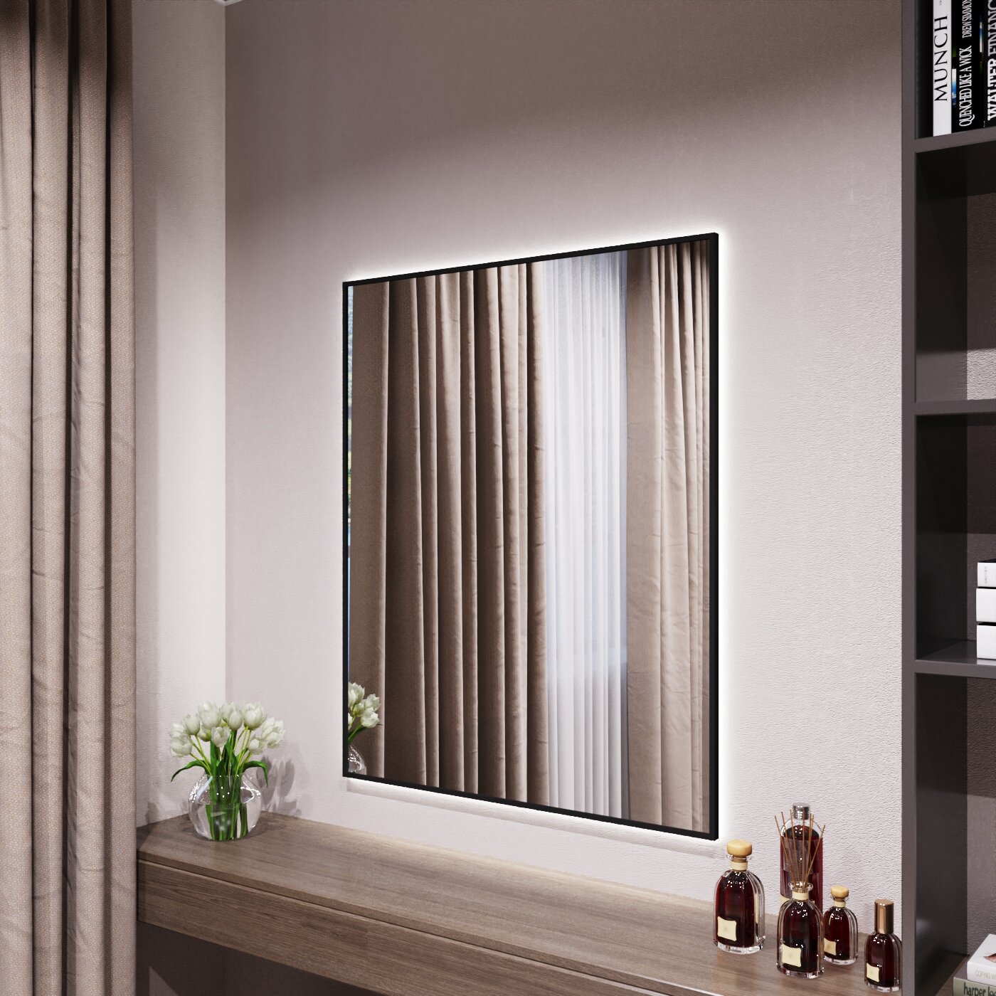 Зеркало с подсветкой в алюминиевой раме настенное Market-house 100х90 см. Свет: Нейтральный Белый 6000К. Черное