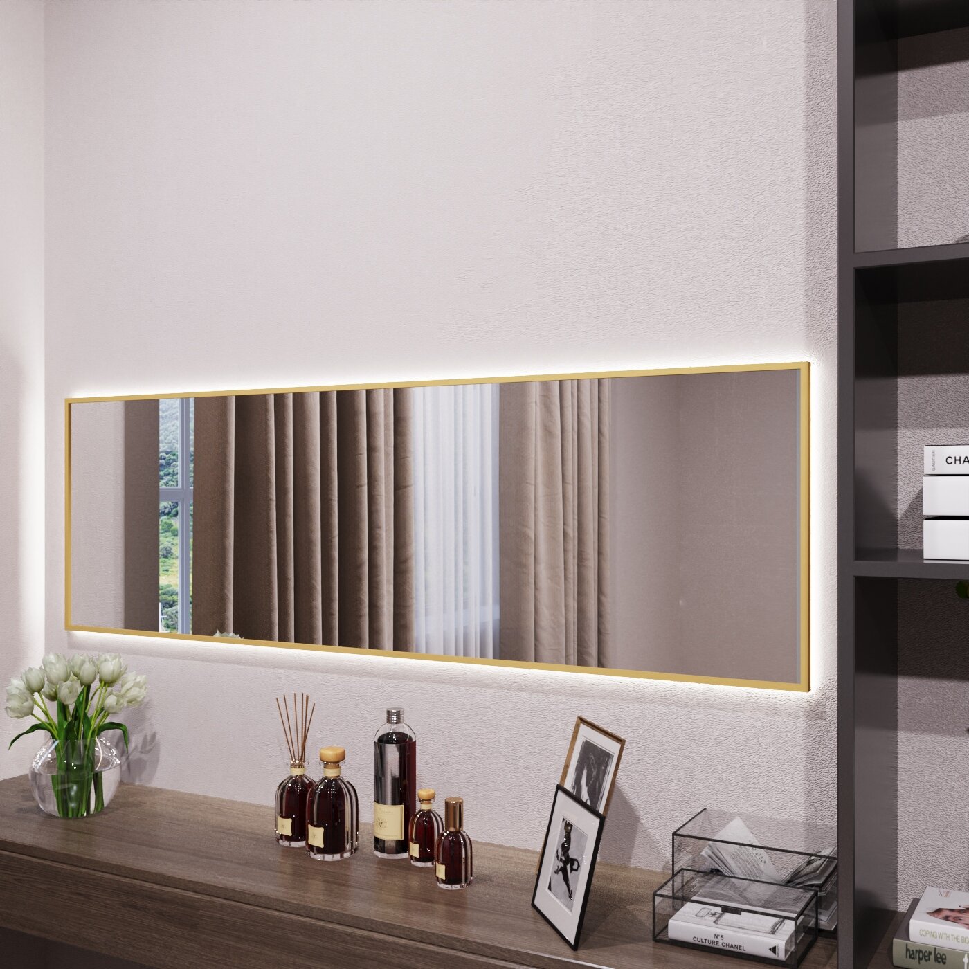 Зеркало с подсветкой в алюминиевой раме настенное Market-house 160х60 см. Свет: Нейтральный Белый 6000К. Золото