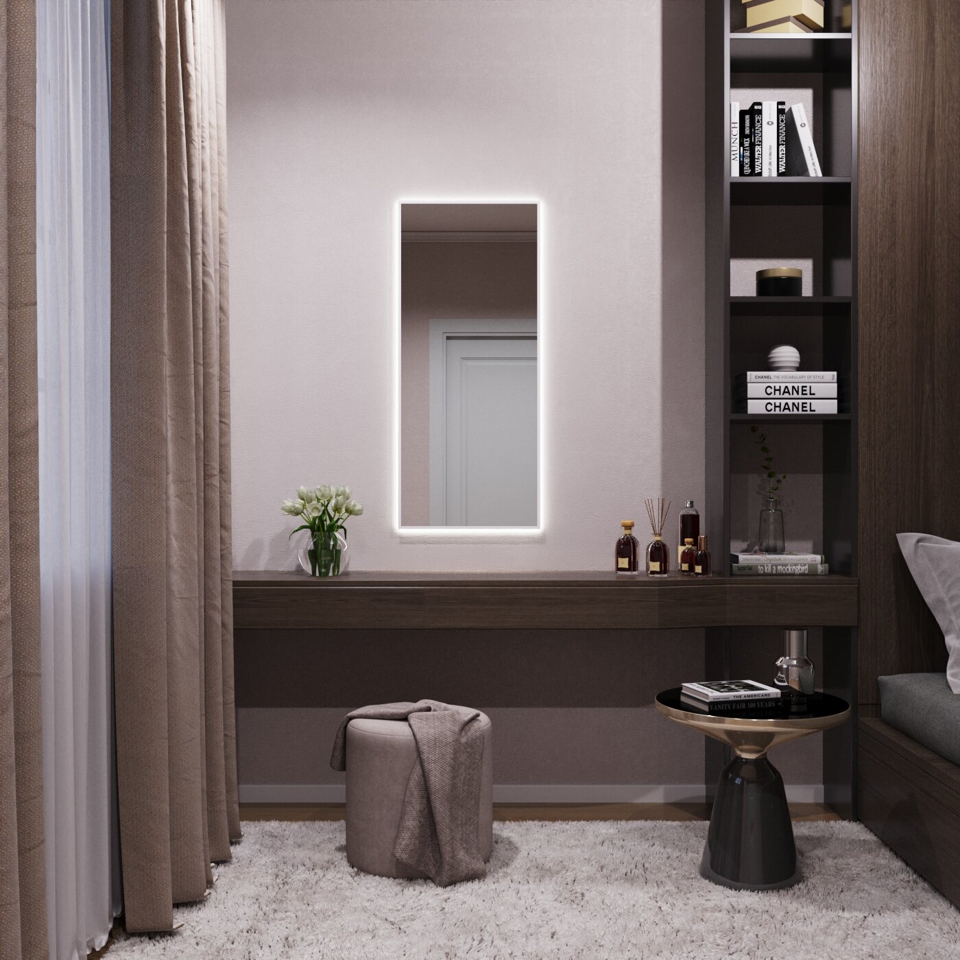 СохранитьЗеркало с подсветкой в алюминиевой раме настенное Market-house 100х50 см. Свет: Нейтральный белый 6000К. Белое интересное: