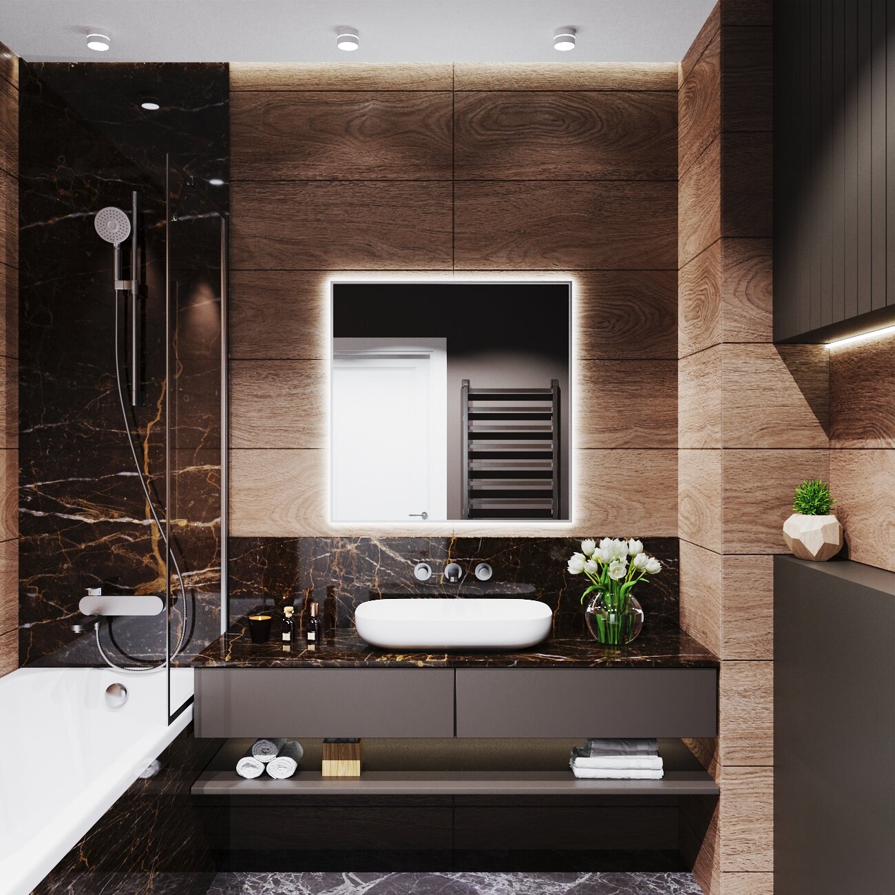 СохранитьЗеркало с подсветкой в алюминиевой раме настенное Market-house 80х80 см. Свет: Нейтральный Белый 6000К. Серебро интересное: