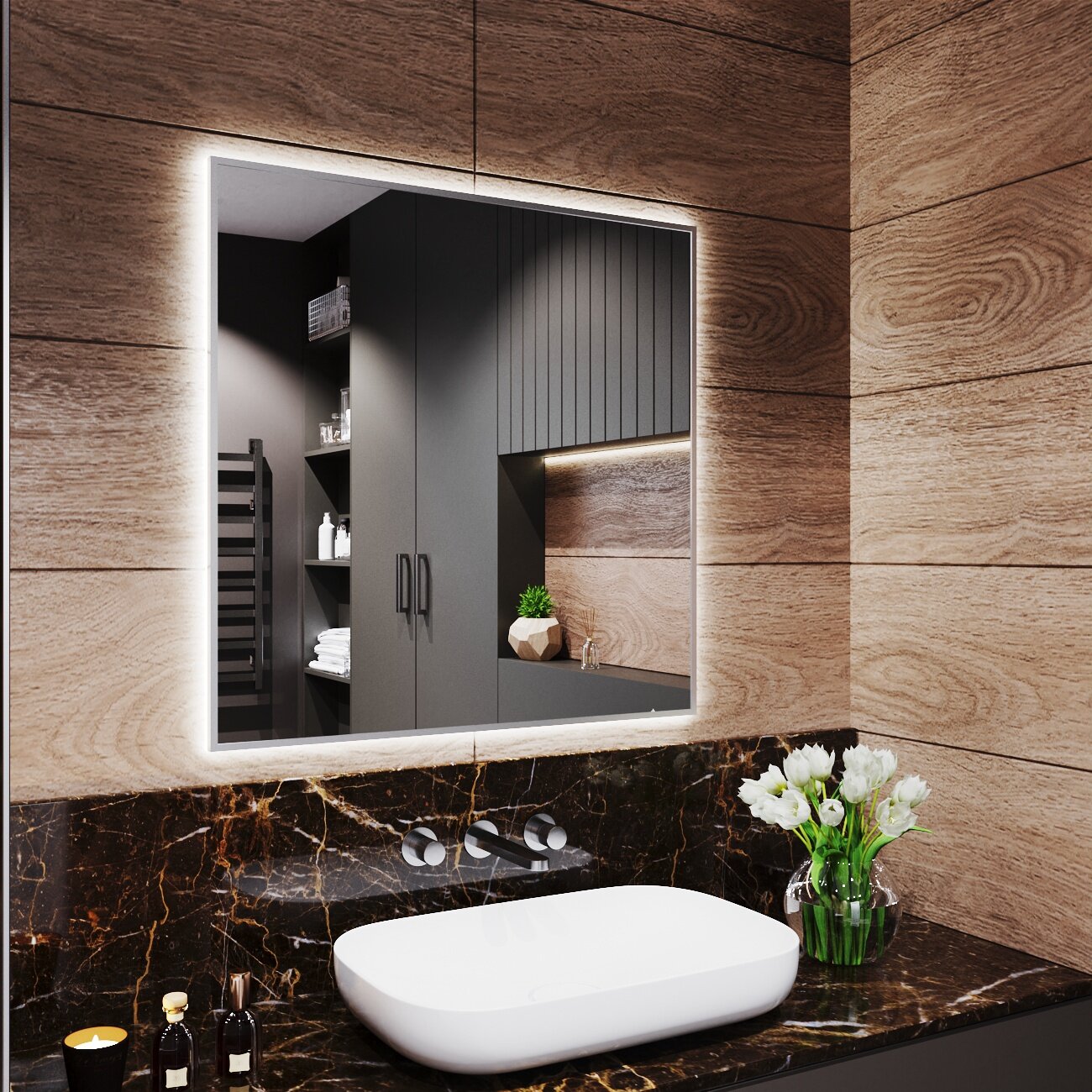 Зеркало с подсветкой в алюминиевой раме настенное Market-house 80х70 см. Свет: Нейтральный Белый 6000К. Серебро