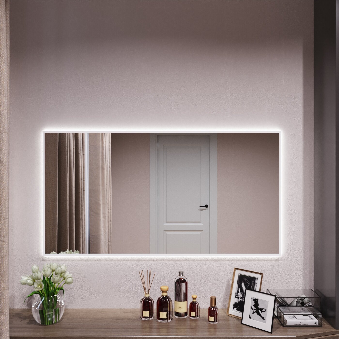 СохранитьЗеркало с подсветкой в алюминиевой раме настенное Market-house 120х70 см. Свет: Нейтральный Белый 6000К. Белое интересное: