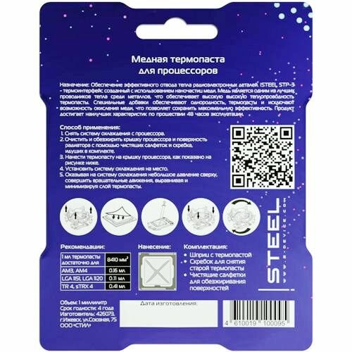 Термопаста Steel STP-3 Frost Cuprum медная для компьютерных процессоров, шприц 3 грамма