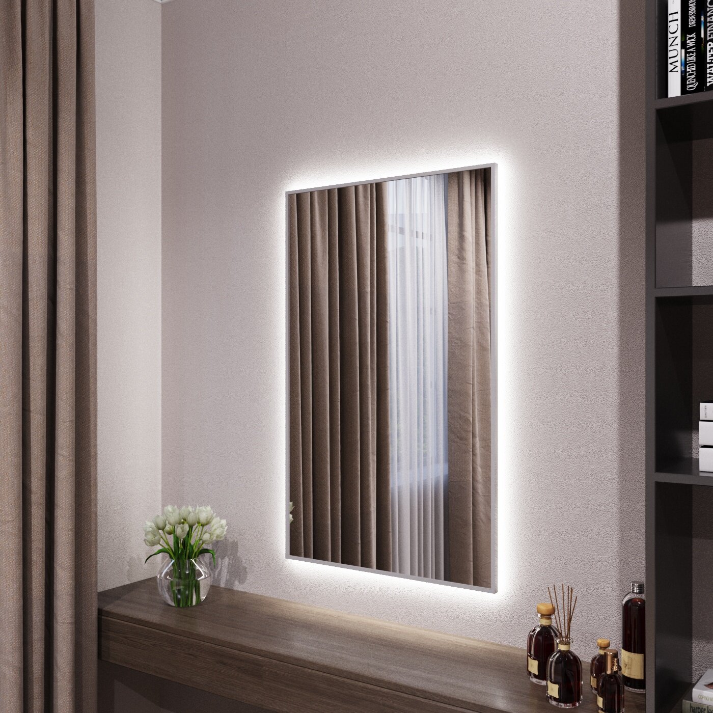 Зеркало с подсветкой в алюминиевой раме настенное Market-house 60х50 см. Свет: Нейтральный белый 6000К. Белое