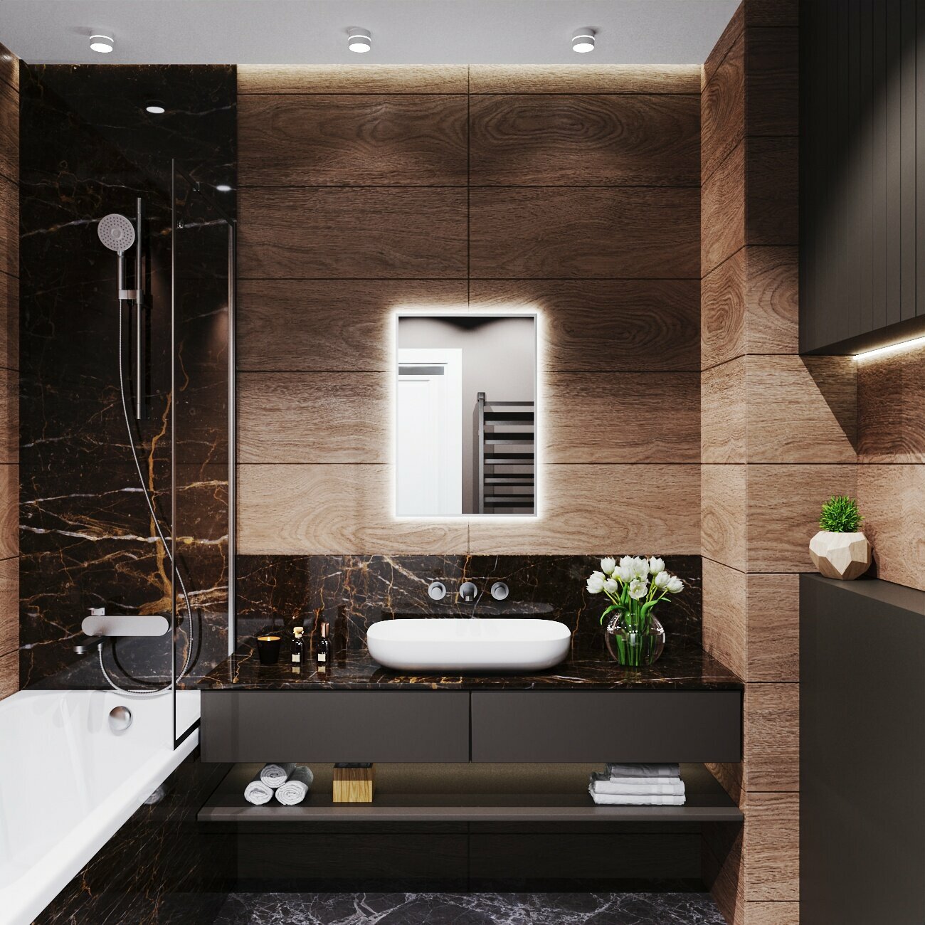 Зеркало с подсветкой в алюминиевой раме настенное Market-house 90х50 см. Свет: Нейтральный белый 6000К. Черное