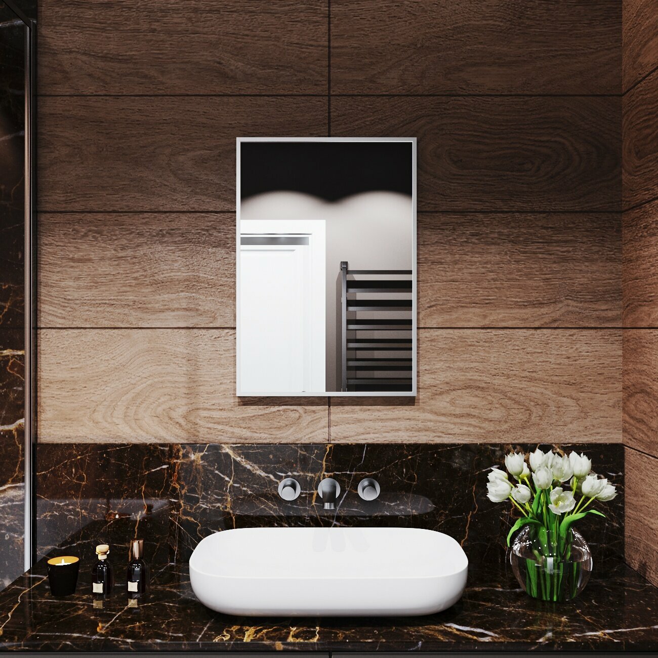 Купить Зеркало с подсветкой в алюминиевой раме настенное Market-house 60х50 см. Свет: Нейтральный белый 6000К. Серебро