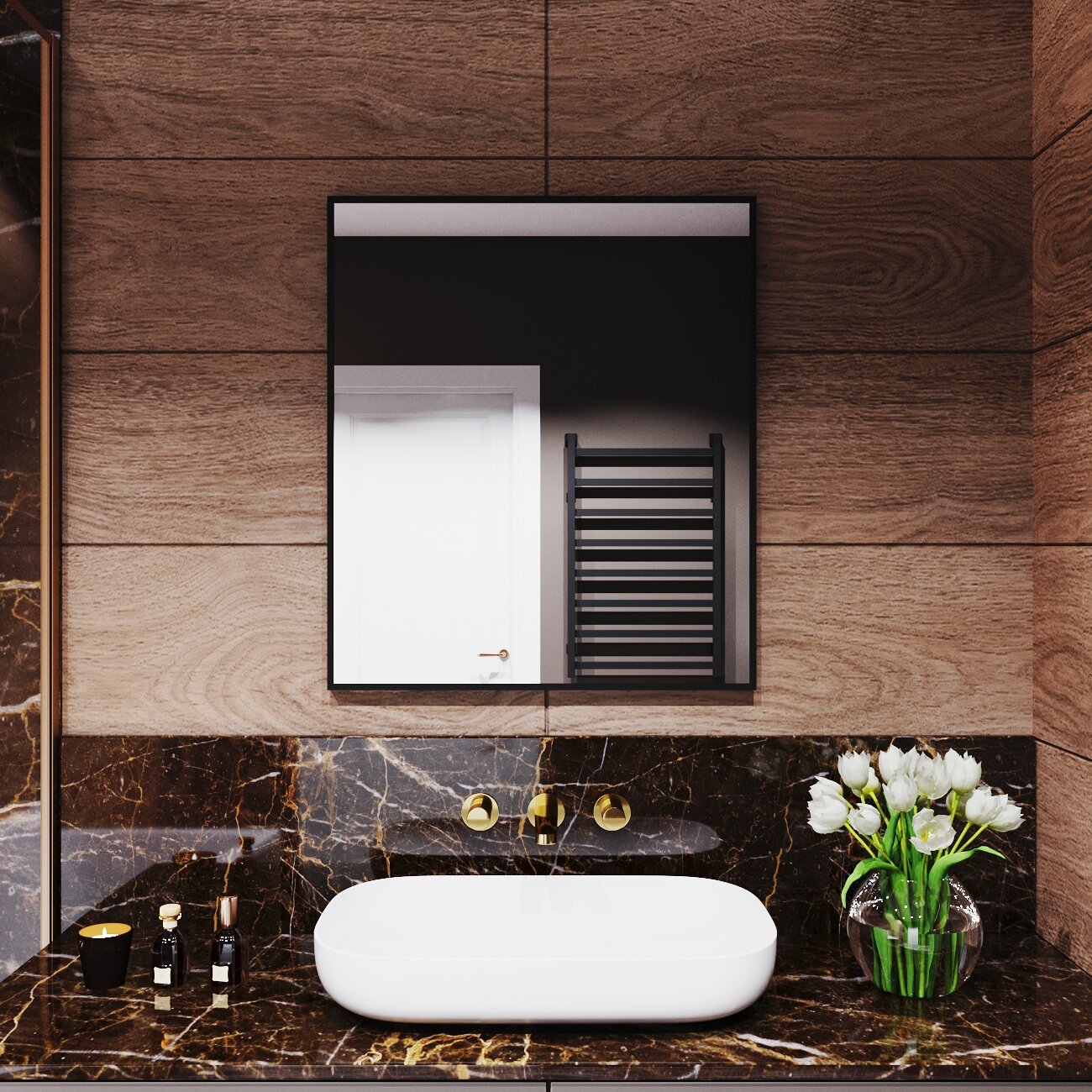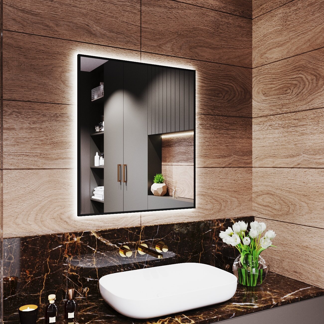 СохранитьЗеркало с подсветкой в алюминиевой раме настенное Market-house 70х60 см. Свет: Нейтральный Белый 6000К. Черное интересное: