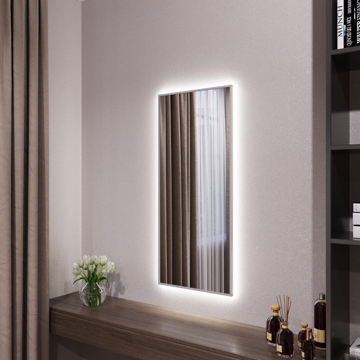Зеркало с подсветкой в алюминиевой раме настенное Market-house 130х60 см. Свет: Нейтральный Белый 6000К. Серебро