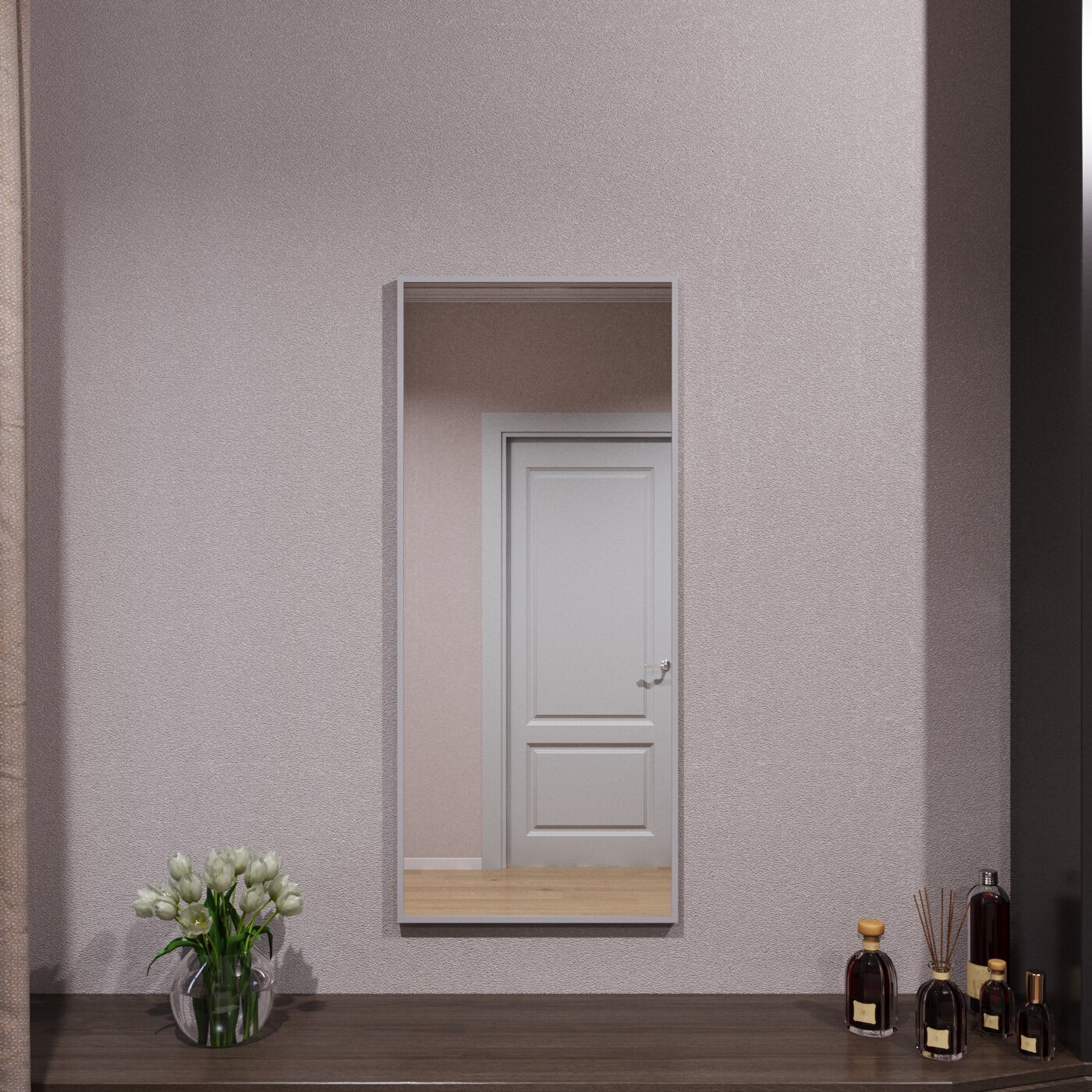 Зеркало с подсветкой в алюминиевой раме настенное Market-house 180х60 см. Свет: Нейтральный Белый 6000К. Серебро