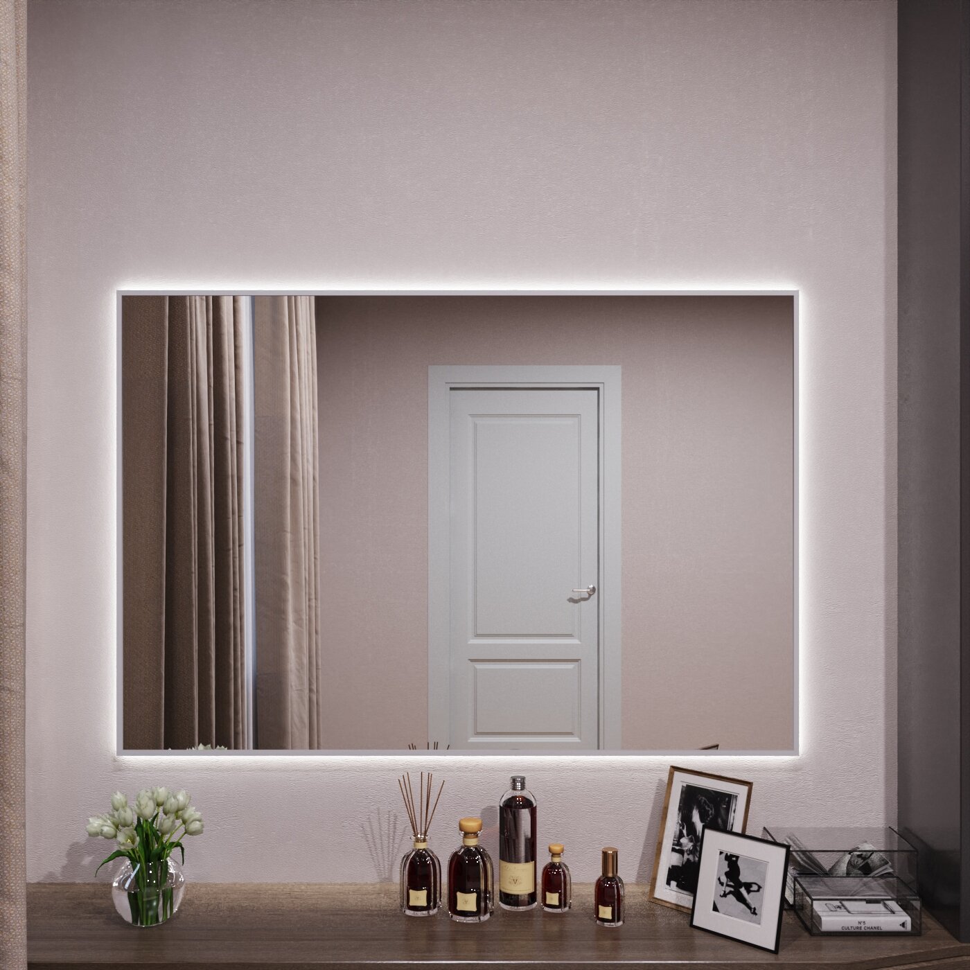 | Особенности | подсветка, с рамой |
