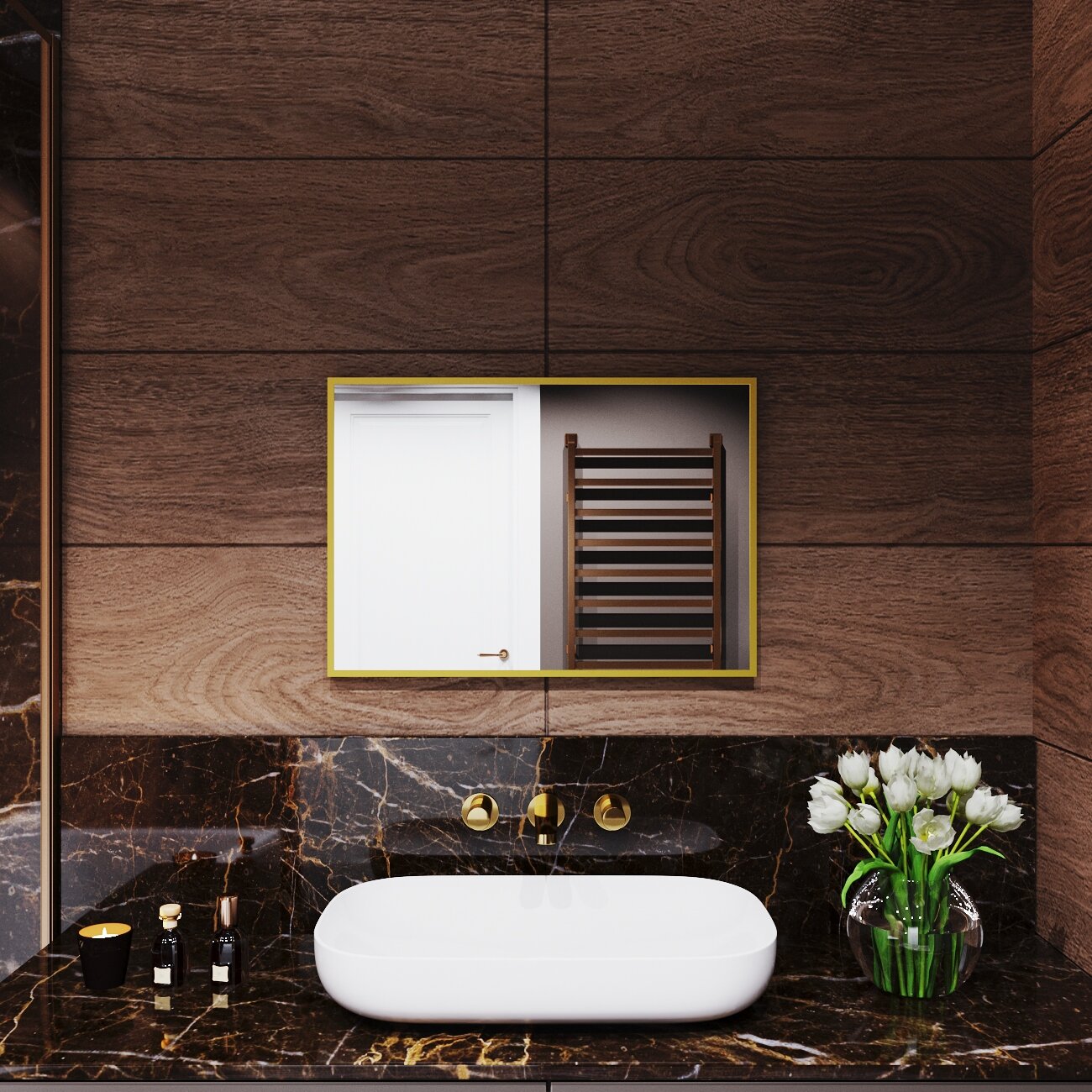 Купить Зеркало с подсветкой в алюминиевой раме настенное Market-house 60х50 см. Свет: Нейтральный белый 6000К. Золото