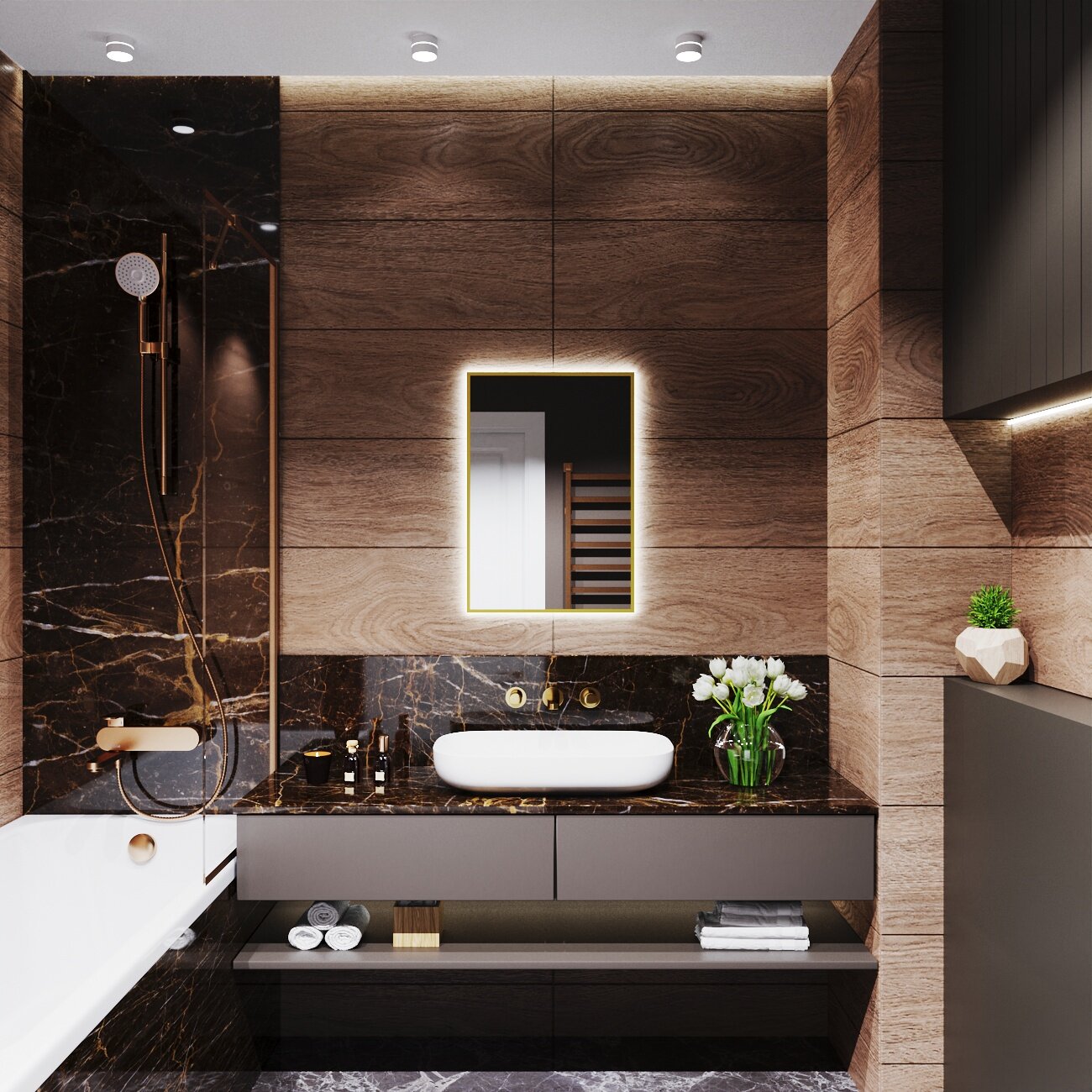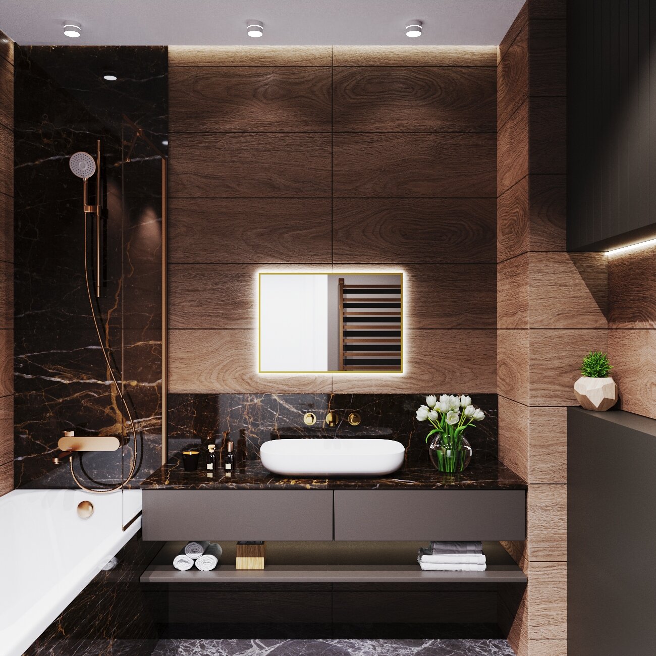 СохранитьЗеркало с подсветкой в алюминиевой раме настенное Market-house 60х50 см. Свет: Нейтральный белый 6000К. Золото интересное: