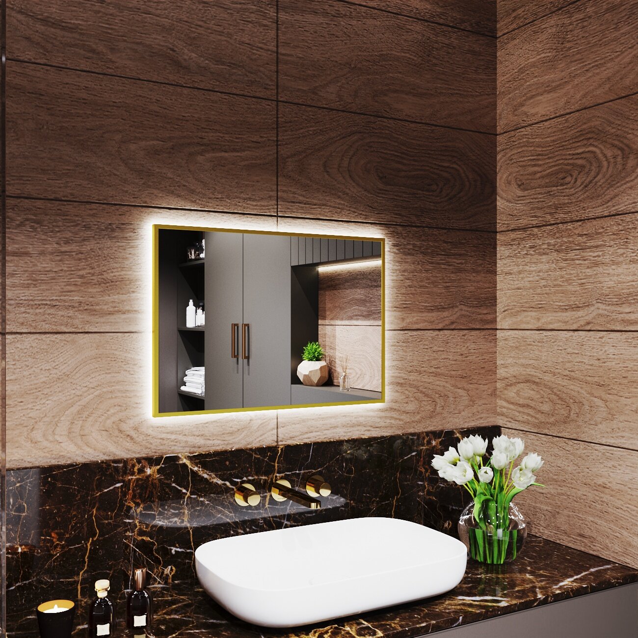 Зеркало с подсветкой в алюминиевой раме настенное Market-house90х50 см. Свет: Нейтральный белый 6000К. Золото