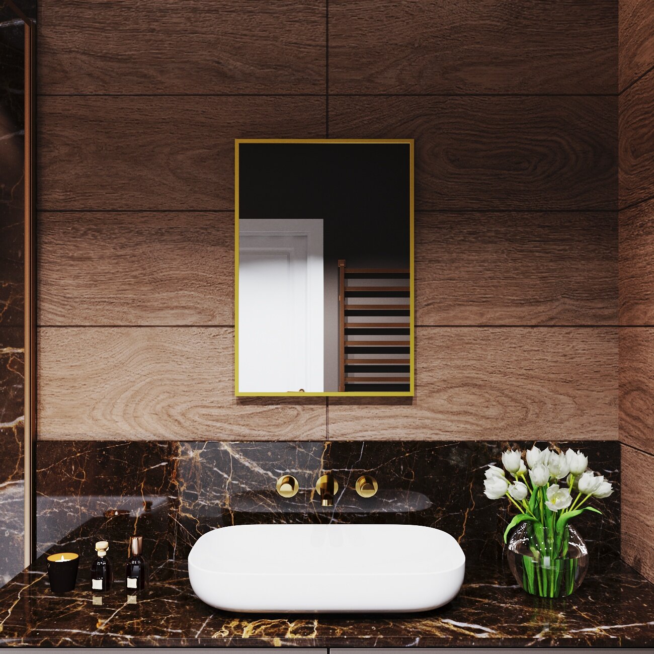 Зеркало с подсветкой в алюминиевой раме настенное Market-house 80х40 см. Свет: Нейтральный Белый 6000К. Золото