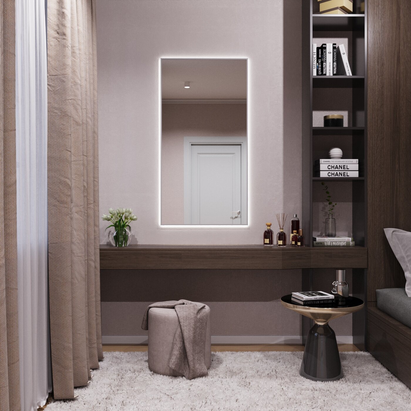 Зеркало с подсветкой в алюминиевой раме настенное Market-house 60х50 см. Свет: Нейтральный белый 6000К. Белое