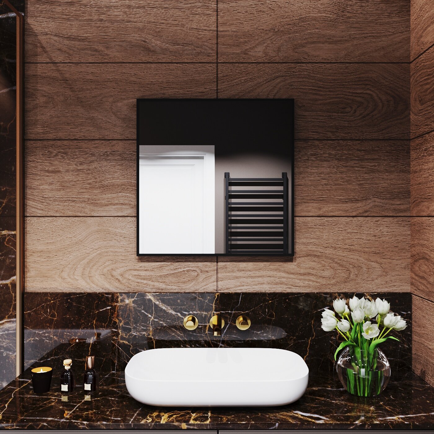 СохранитьЗеркало с подсветкой в алюминиевой раме настенное Market-house 60х60 см. Свет: Нейтральный Белый 6000К. Черное интересное: