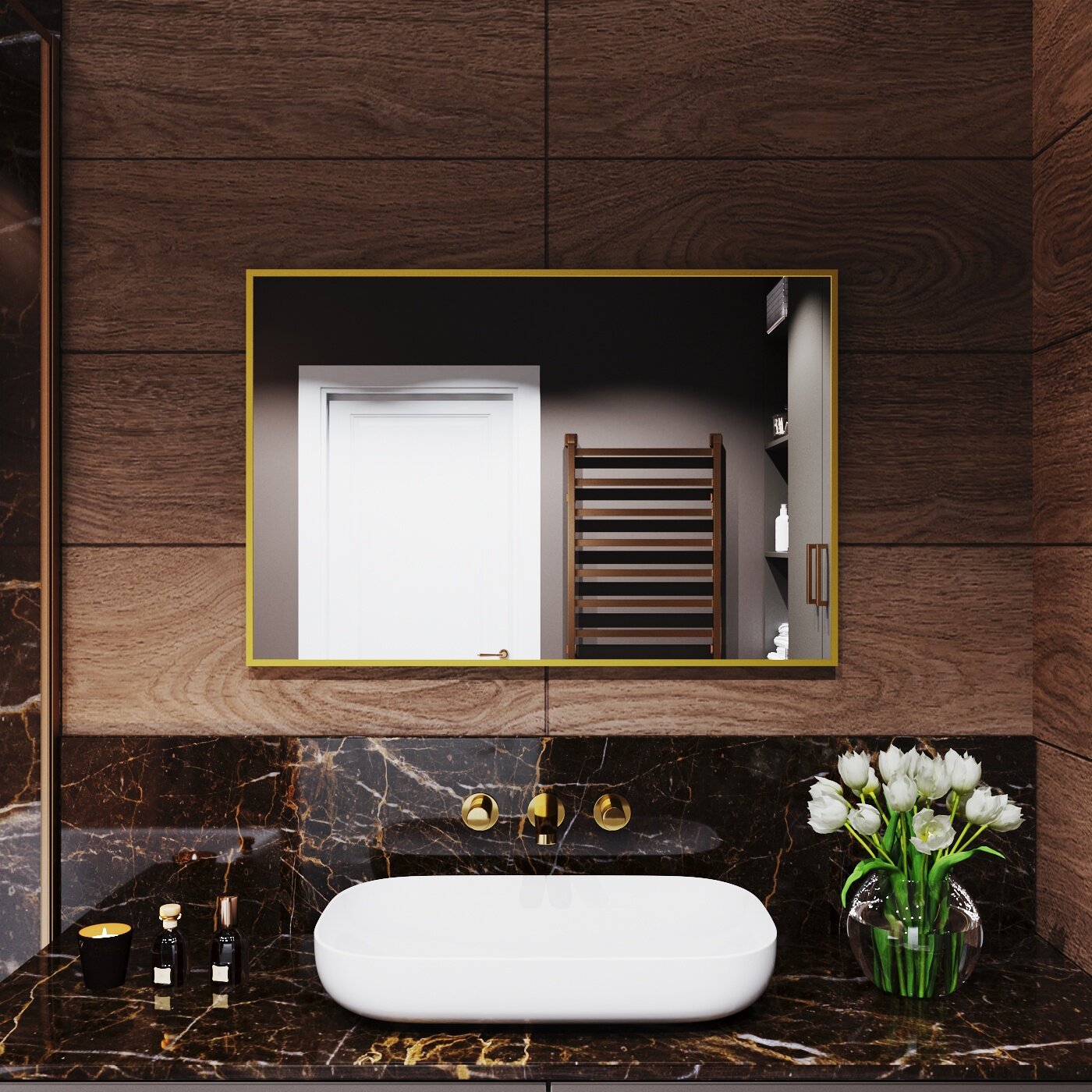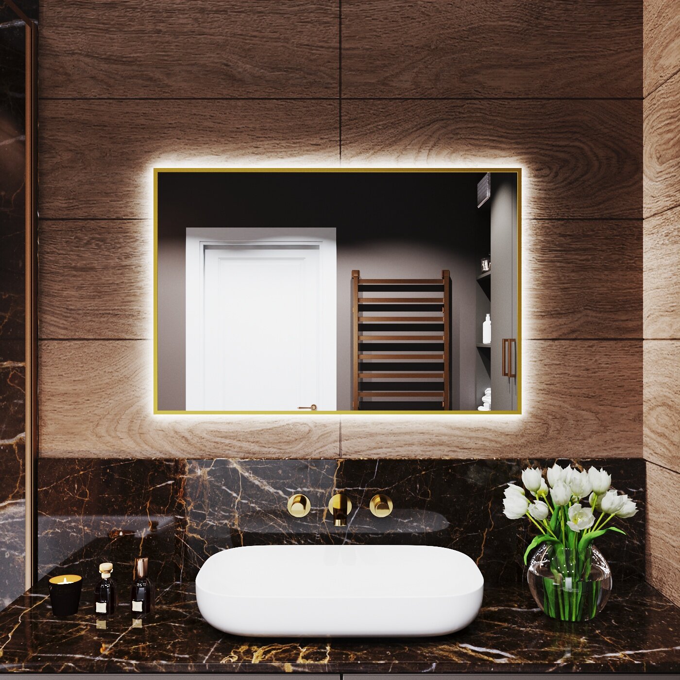 Купить Зеркало с подсветкой в алюминиевой раме настенное Market-house90х60 см. Свет: Нейтральный белый 6000К. Золото