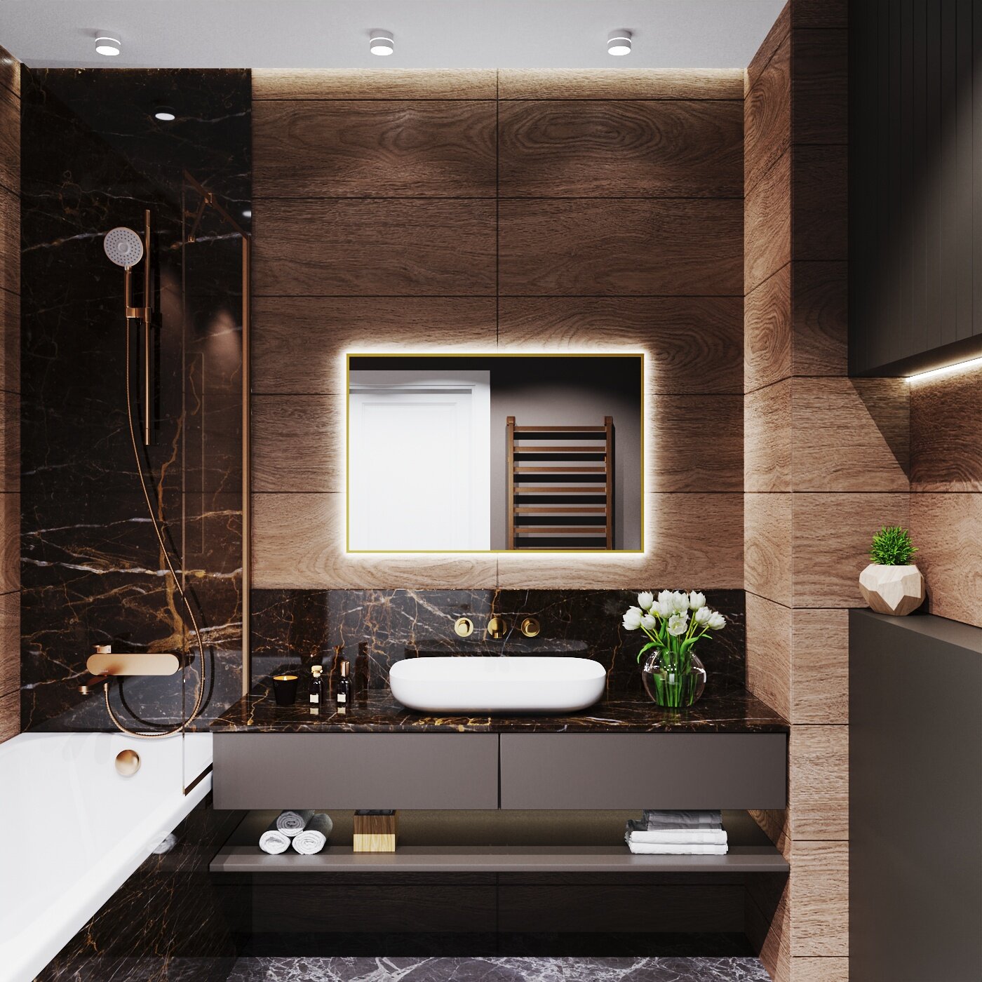 СохранитьЗеркало с подсветкой в алюминиевой раме настенное Market-house90х60 см. Свет: Нейтральный белый 6000К. Золото интересное: