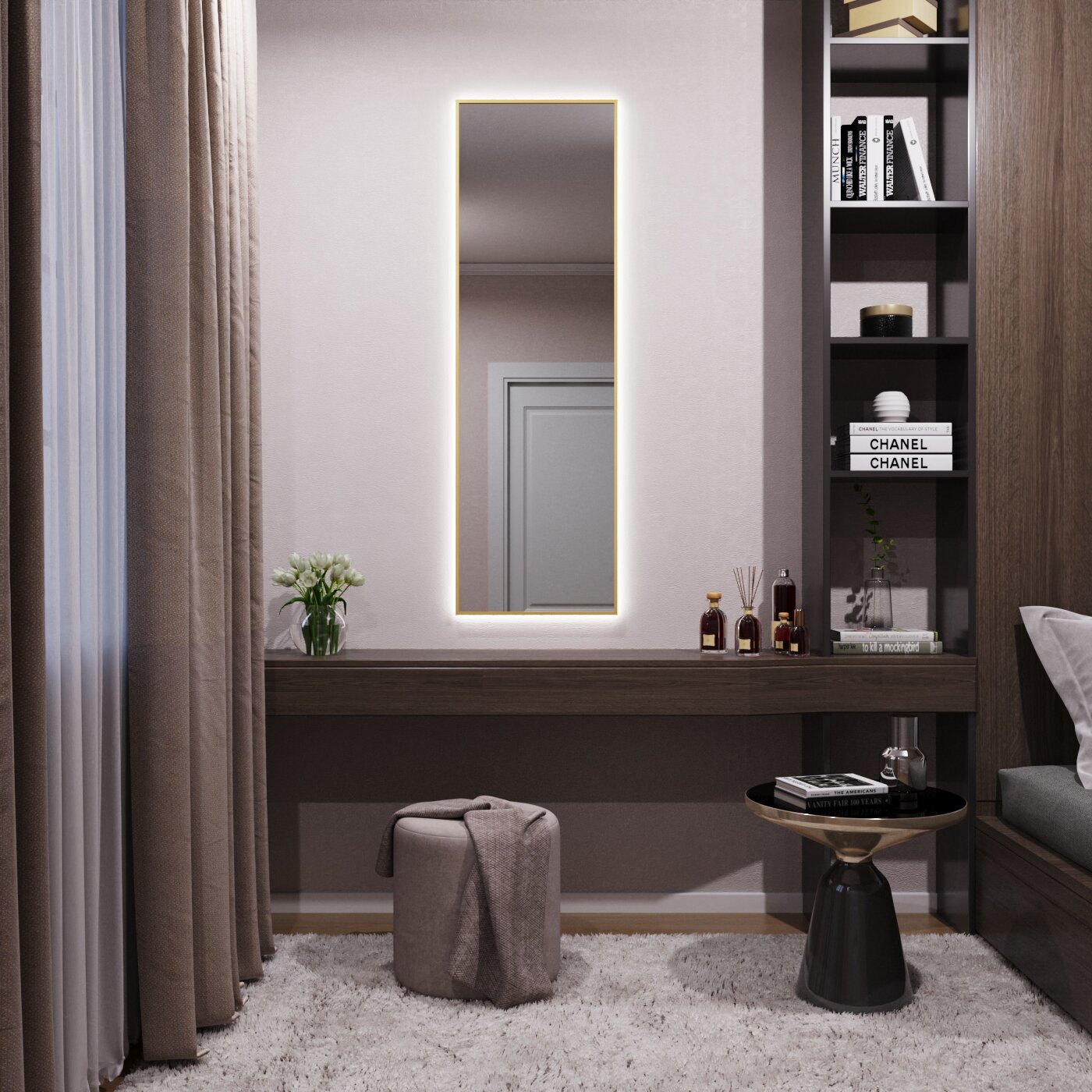 СохранитьЗеркало с подсветкой в алюминиевой раме настенное Market-house 150х45 см. Свет: Нейтральный белый 6000К. Золото интересное: