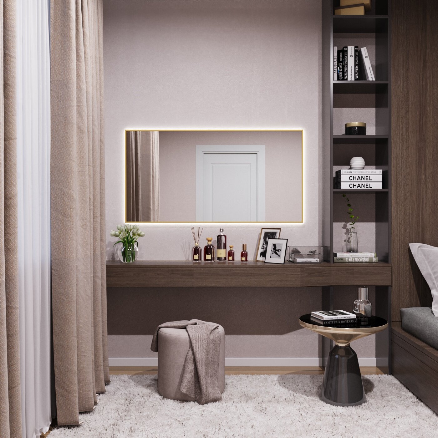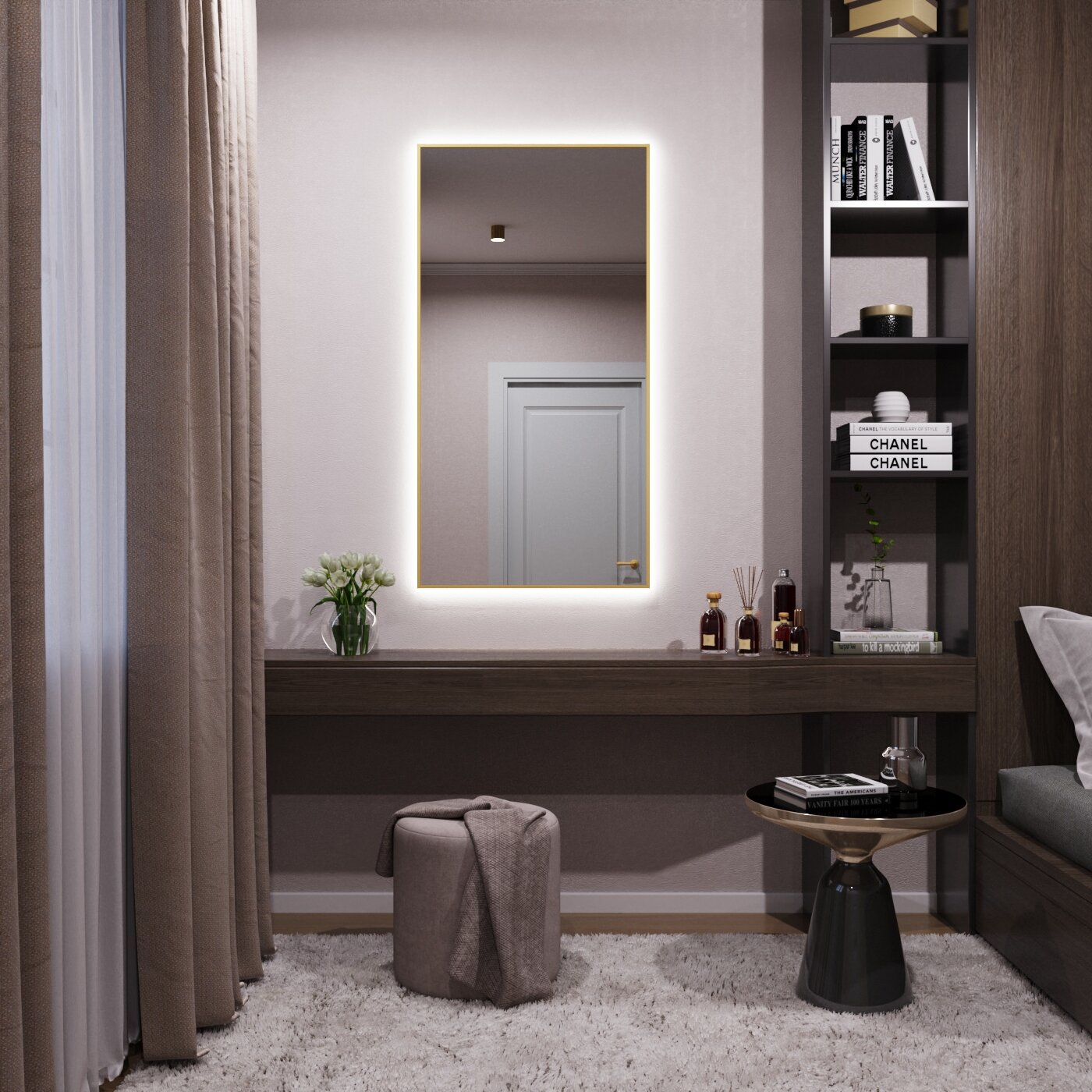 СохранитьЗеркало с подсветкой в алюминиевой раме настенное Market-house 120х70 см. Свет: Нейтральный Белый 6000К. Золото интересное: