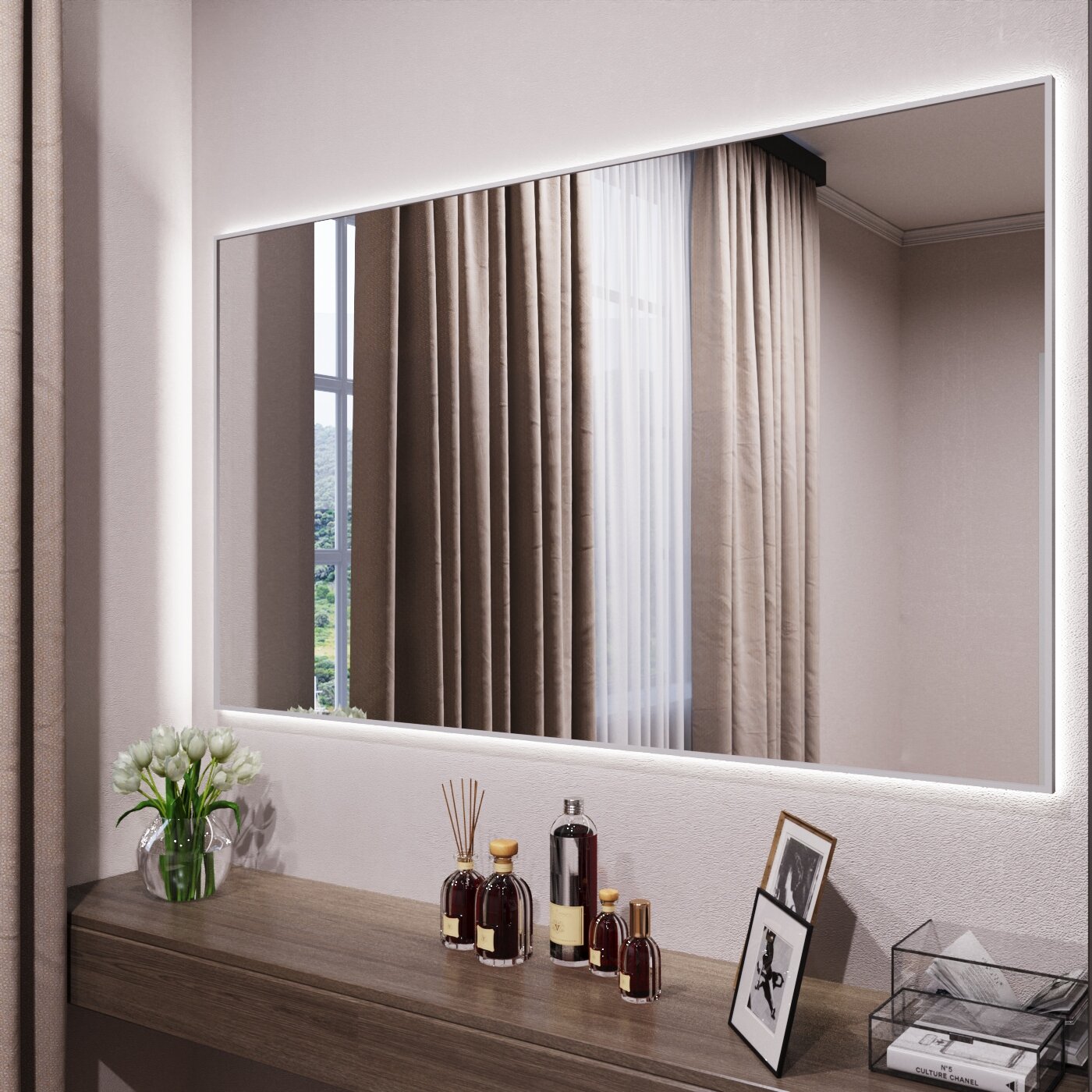 Зеркало с подсветкой в алюминиевой раме настенное Market-house 120х50 см. Свет: Нейтральный Белый 6000К. Белое