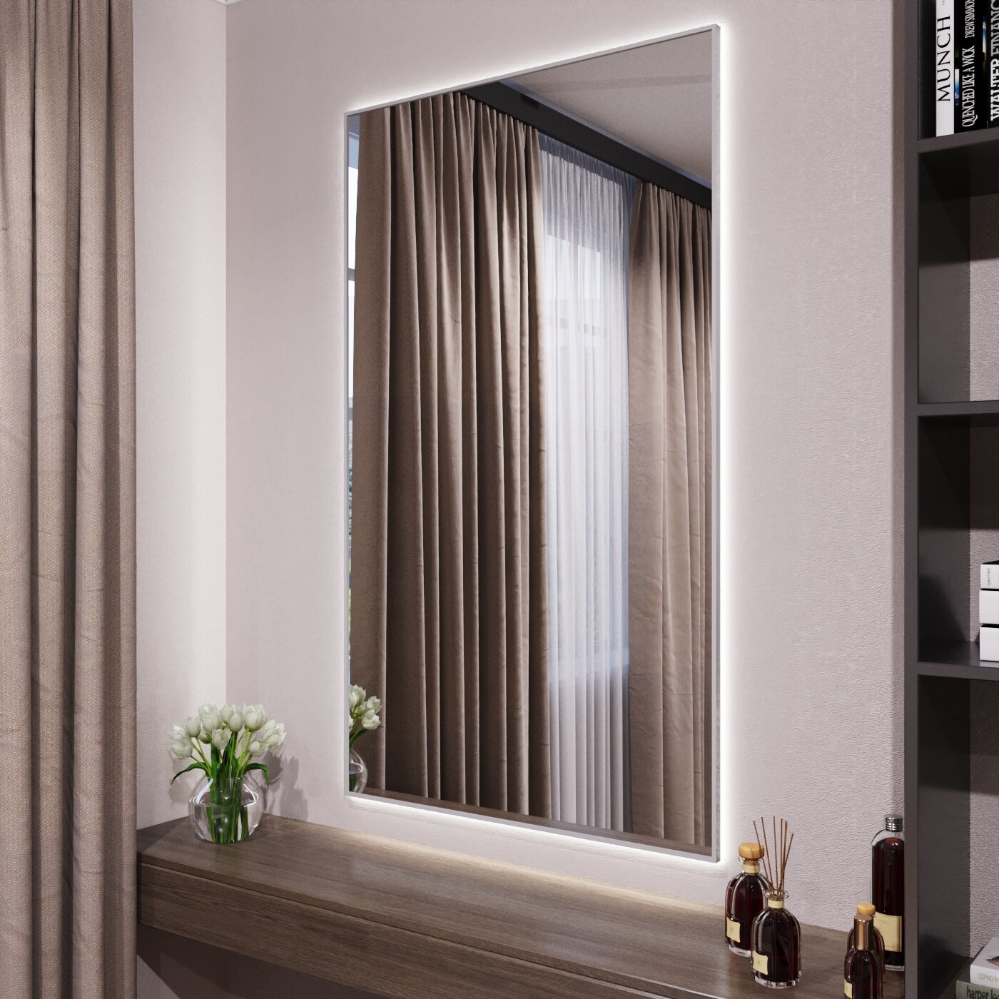 Зеркало с подсветкой в алюминиевой раме настенное Market-house 110х60 см. Свет: Нейтральный Белый 6000К. Черное