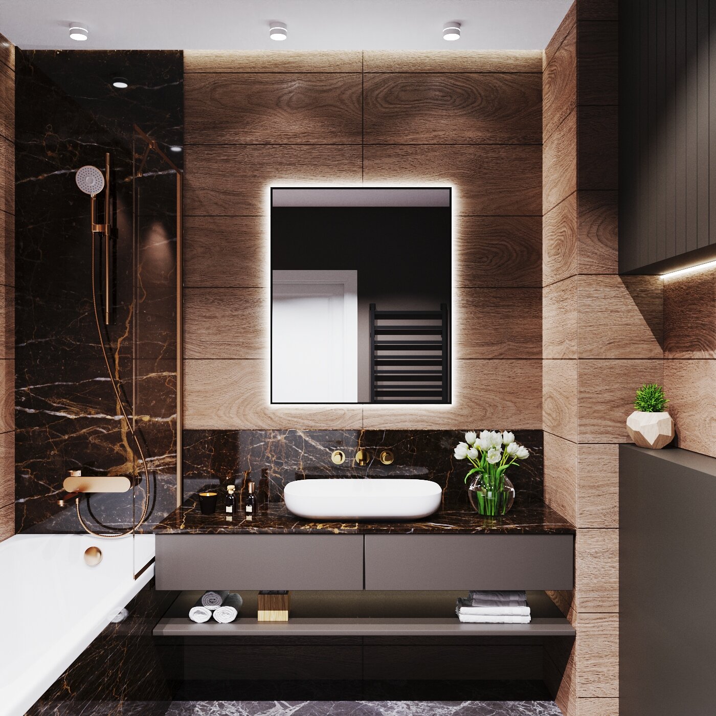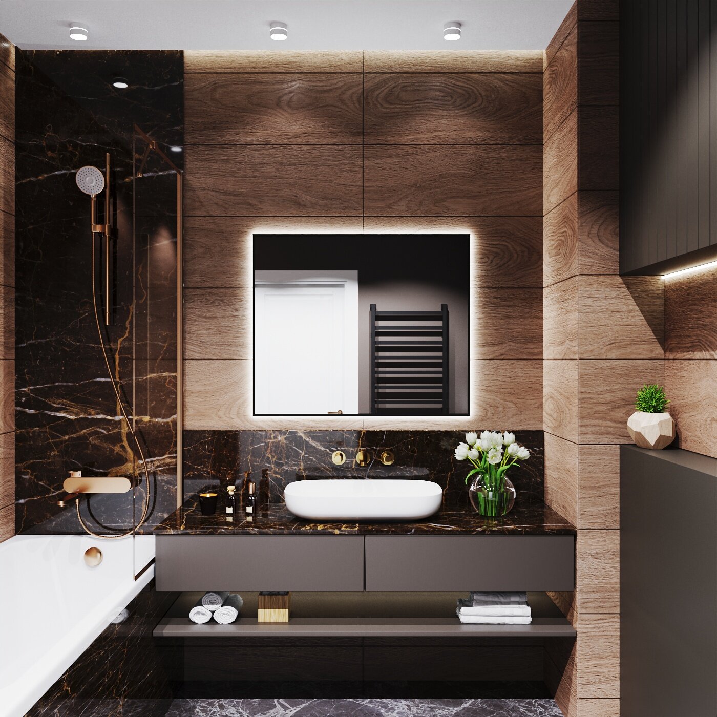 СохранитьЗеркало с подсветкой в алюминиевой раме настенное Market-house90х70 см. Свет: Нейтральный белый 6000К. Черное интересное: