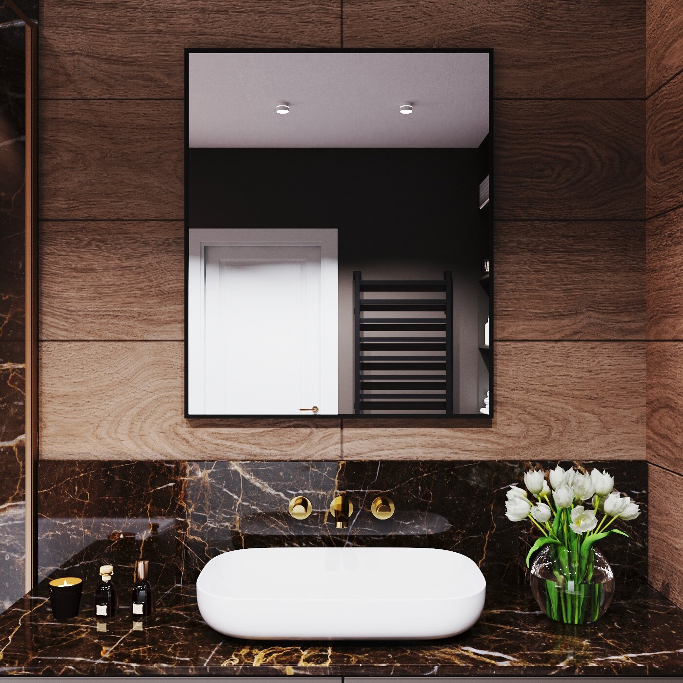 Зеркало с подсветкой в алюминиевой раме настенное Market-house 90х50 см. Свет: Нейтральный белый 6000К. Черное