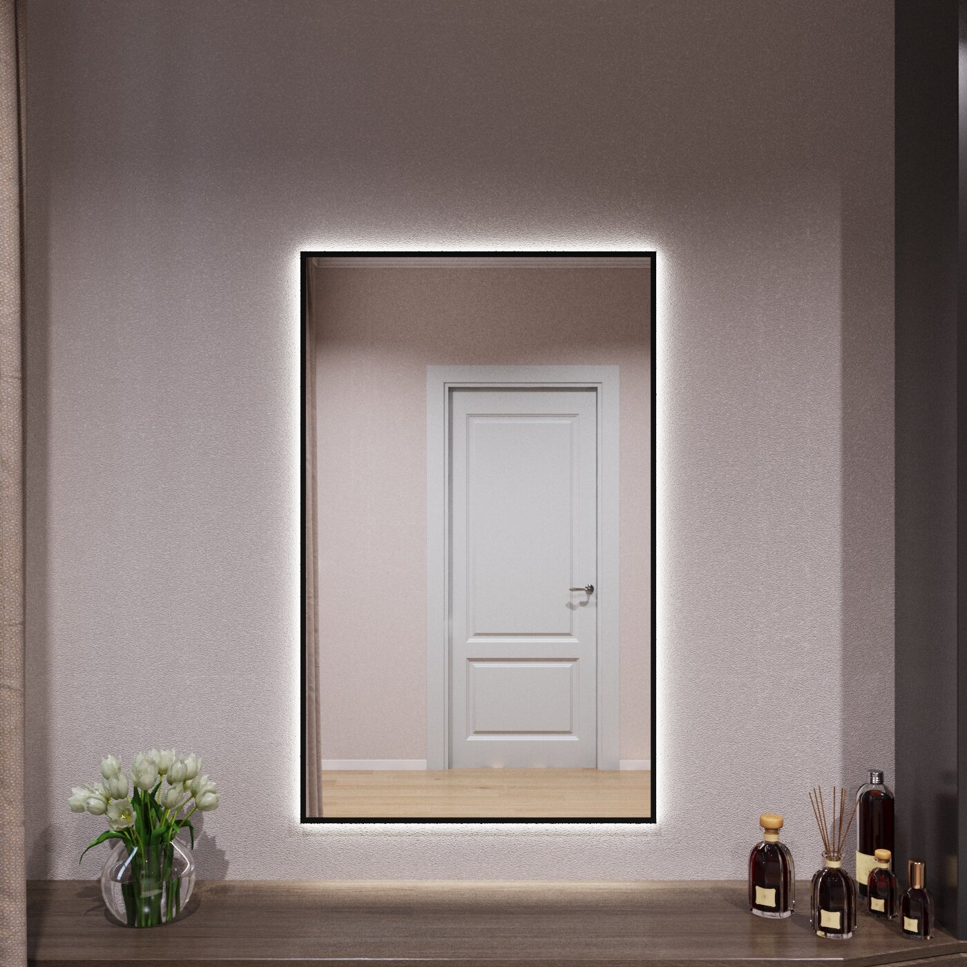 Зеркало с подсветкой в алюминиевой раме настенное Market-house 90х50 см. Свет: Нейтральный белый 6000К. Черное