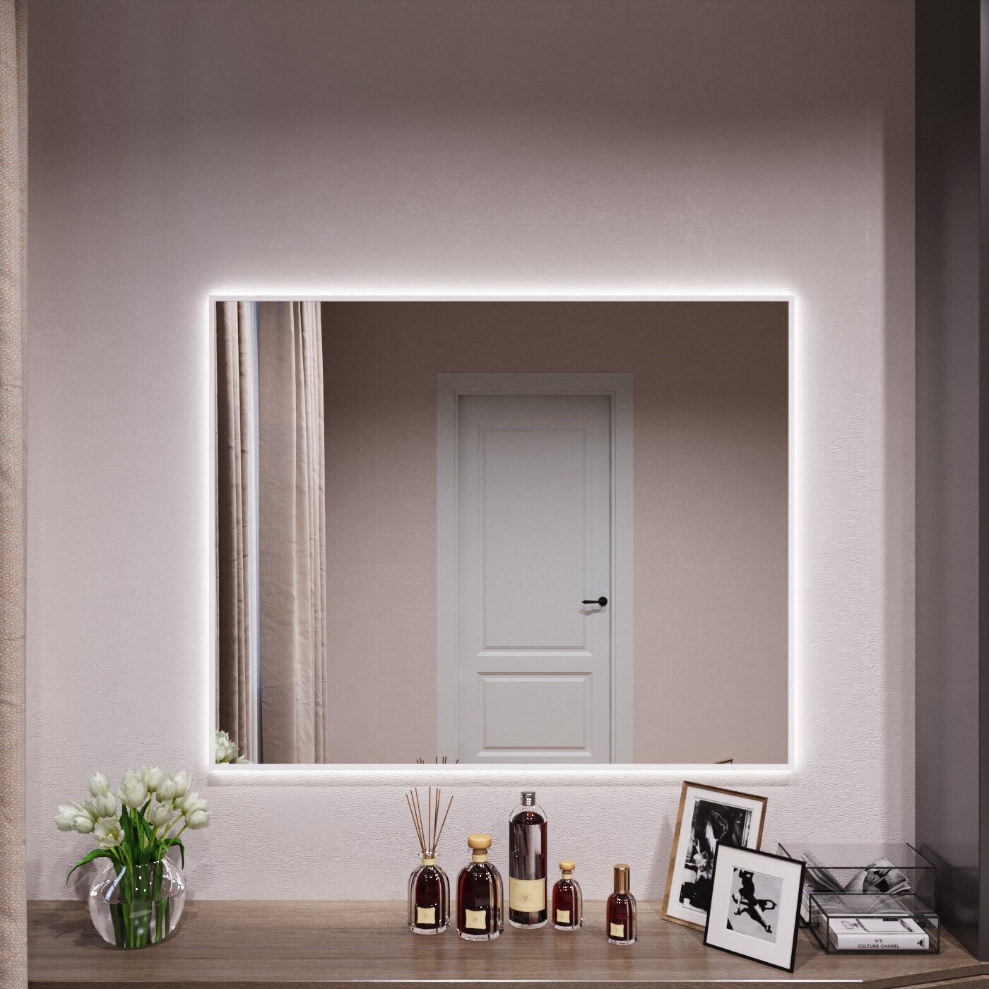 СохранитьЗеркало с подсветкой в алюминиевой раме настенное Market-house 100х90 см. Свет: Нейтральный Белый 6000К. Белое интересное: