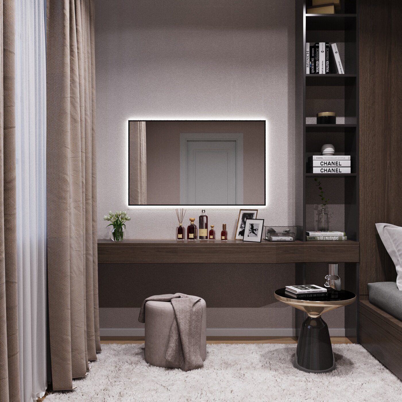 СохранитьЗеркало с подсветкой в алюминиевой раме настенное Market-house 100х70 см. Свет: Нейтральный Белый 6000К. Черное интересное: