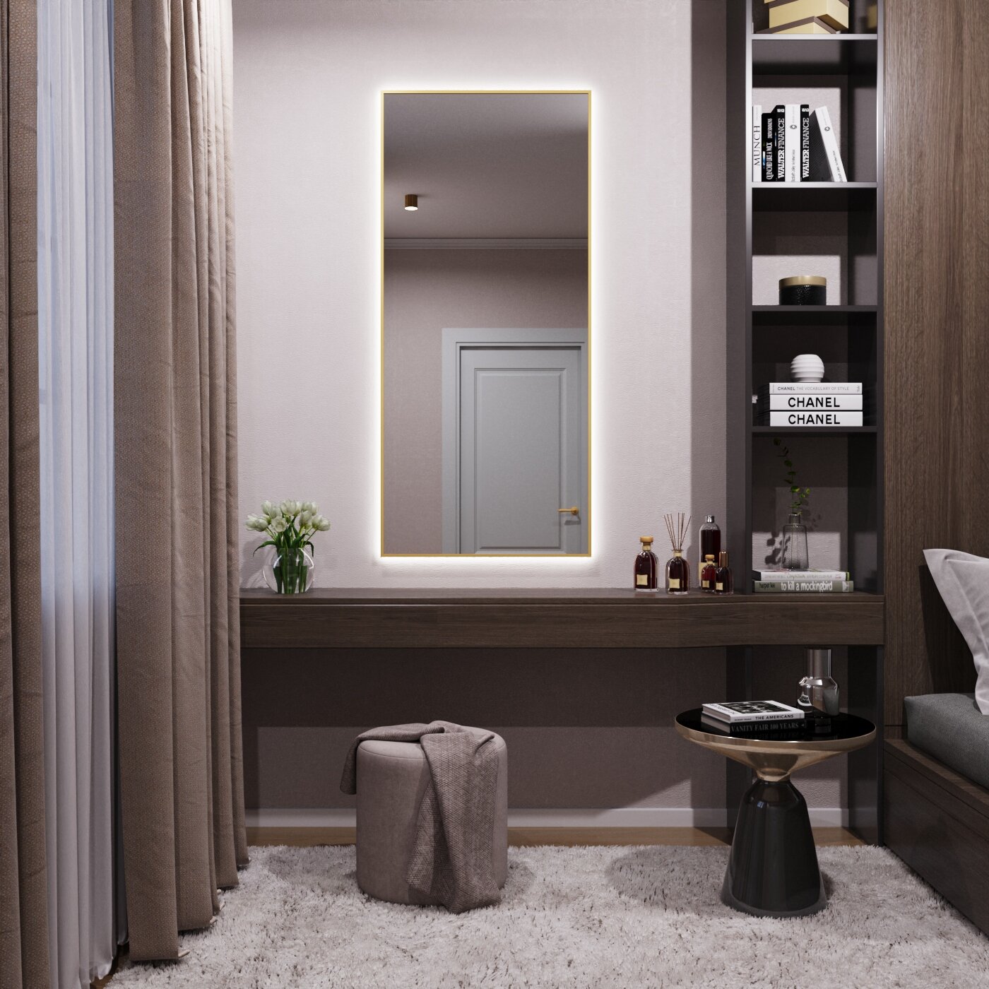 СохранитьЗеркало с подсветкой в алюминиевой раме настенное Market-house150х60 см. Свет: Нейтральный белый 6000К. Золото интересное: