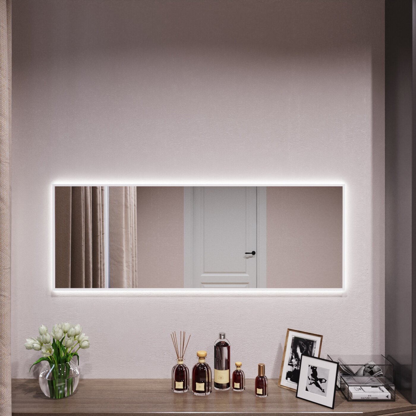 СохранитьЗеркало с подсветкой в алюминиевой раме настенное Market-house 120х50 см. Свет: Нейтральный Белый 6000К. Белое интересное: