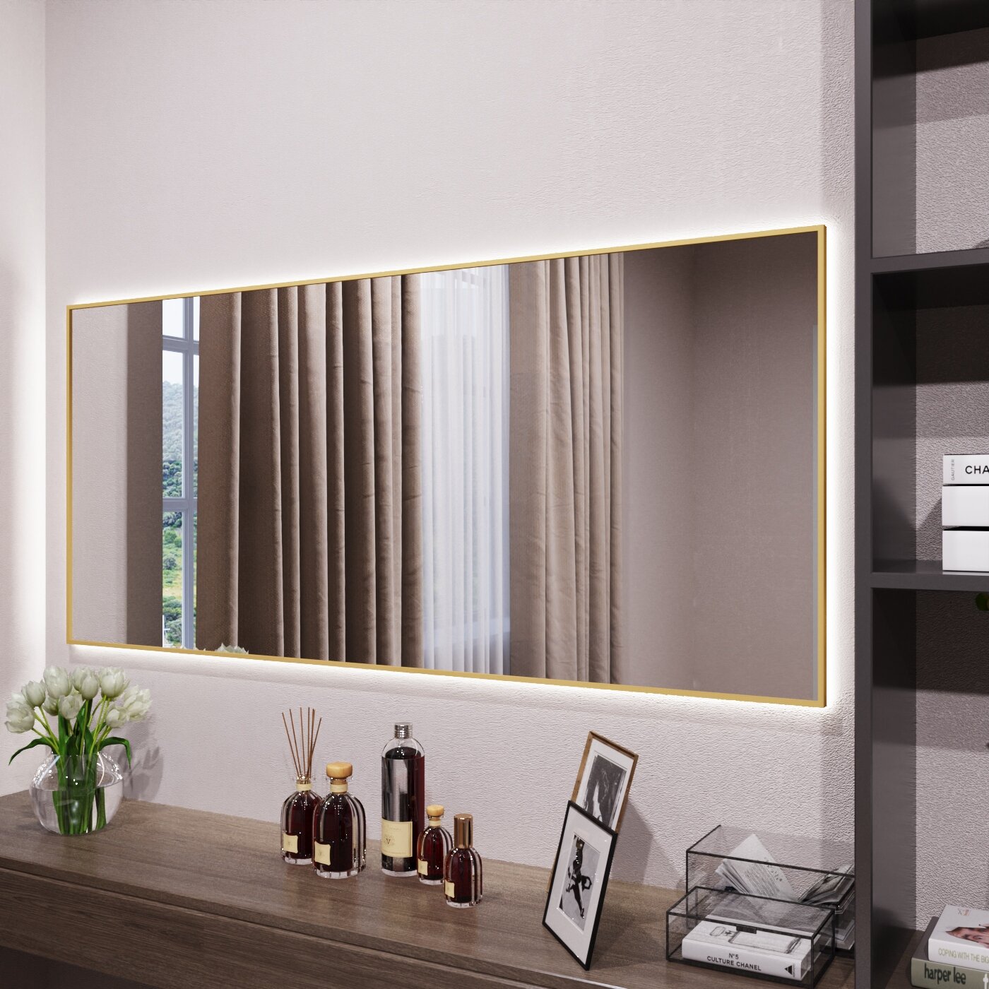 Зеркало с подсветкой в алюминиевой раме настенное Market-house 160х60 см. Свет: Нейтральный Белый 6000К. Золото