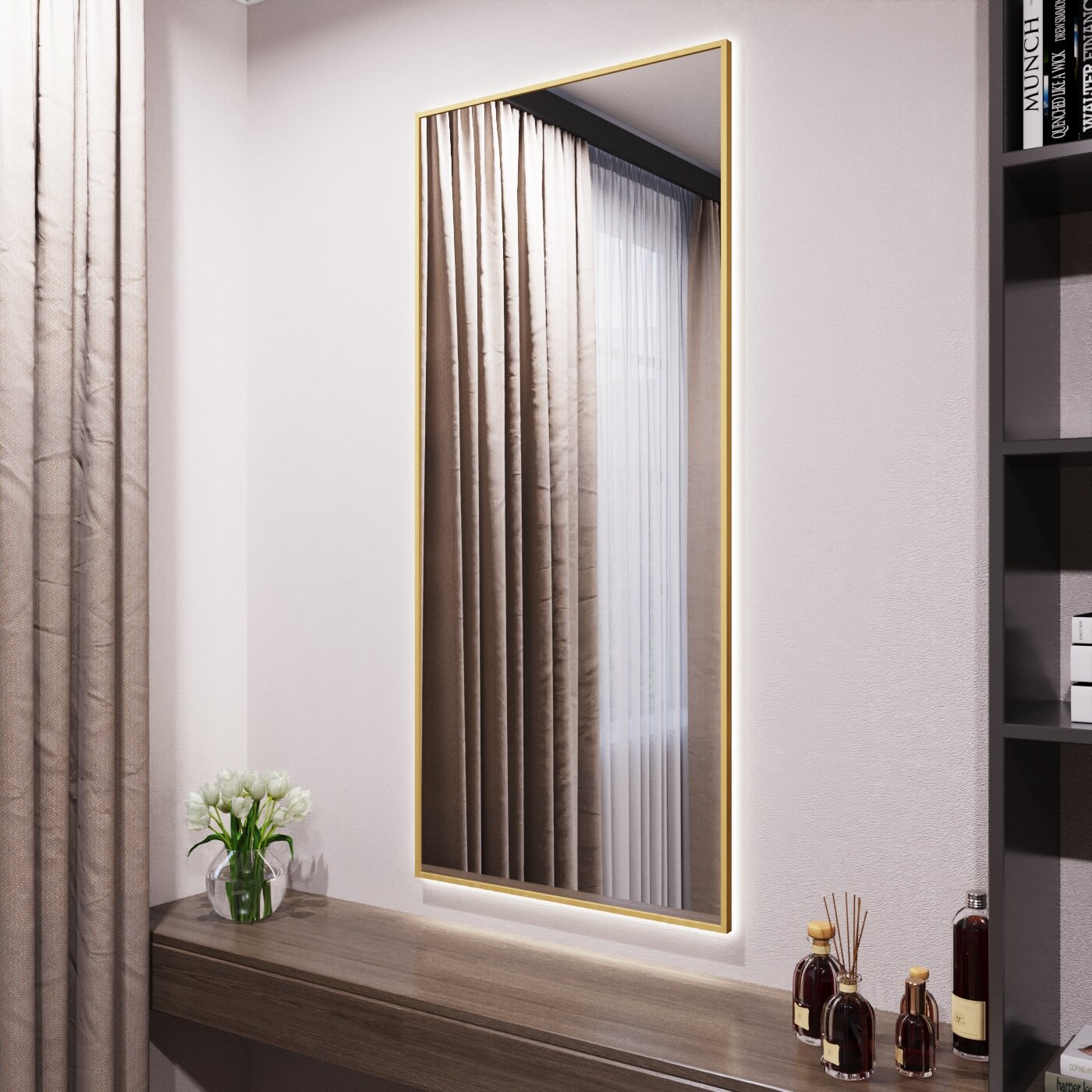 Зеркало с подсветкой в алюминиевой раме настенное Market-house 180х60 см. Свет: Нейтральный Белый 6000К. Золото