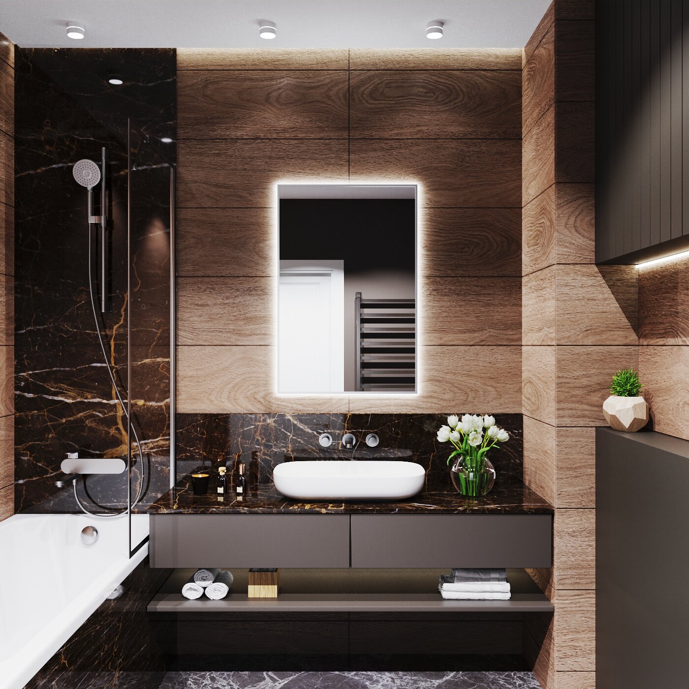 Зеркало с подсветкой в алюминиевой раме настенное Market-house 70х40 см. Свет: Нейтральный белый 6000К. Черное