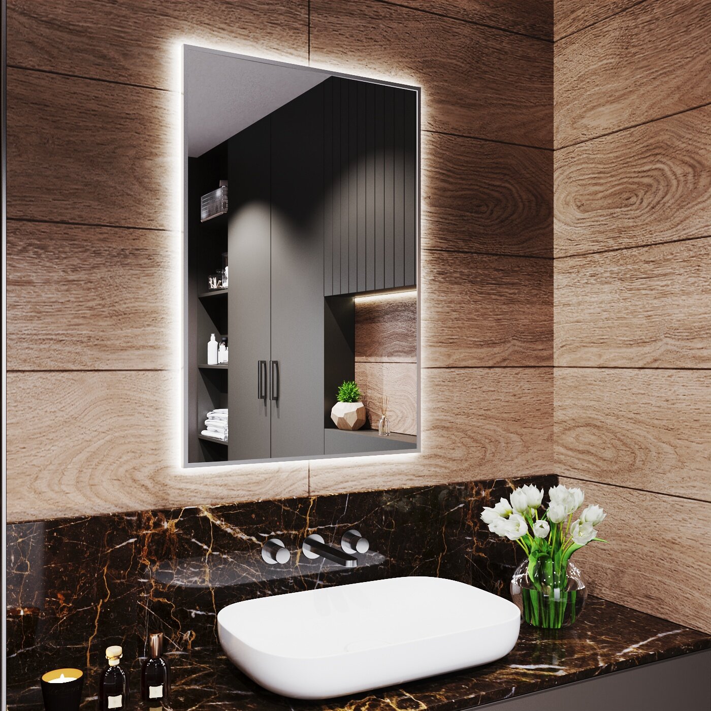 СохранитьЗеркало с подсветкой в алюминиевой раме настенное Market-house 90х60 см. Свет: Нейтральный белый 6000К. Серебро интересное: