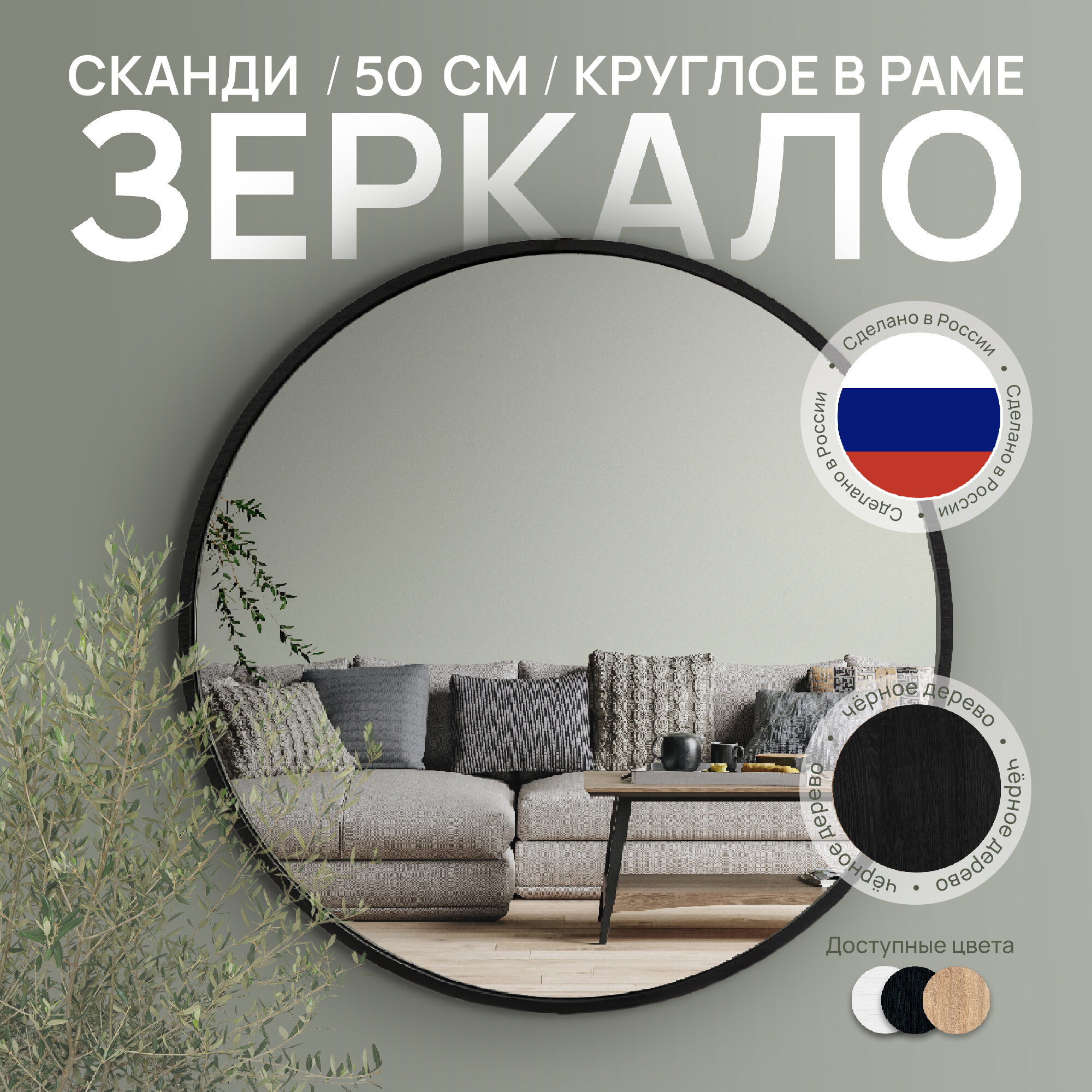 Зеркало в раме круглое Postermarket "Сканди" 50 см интересное: