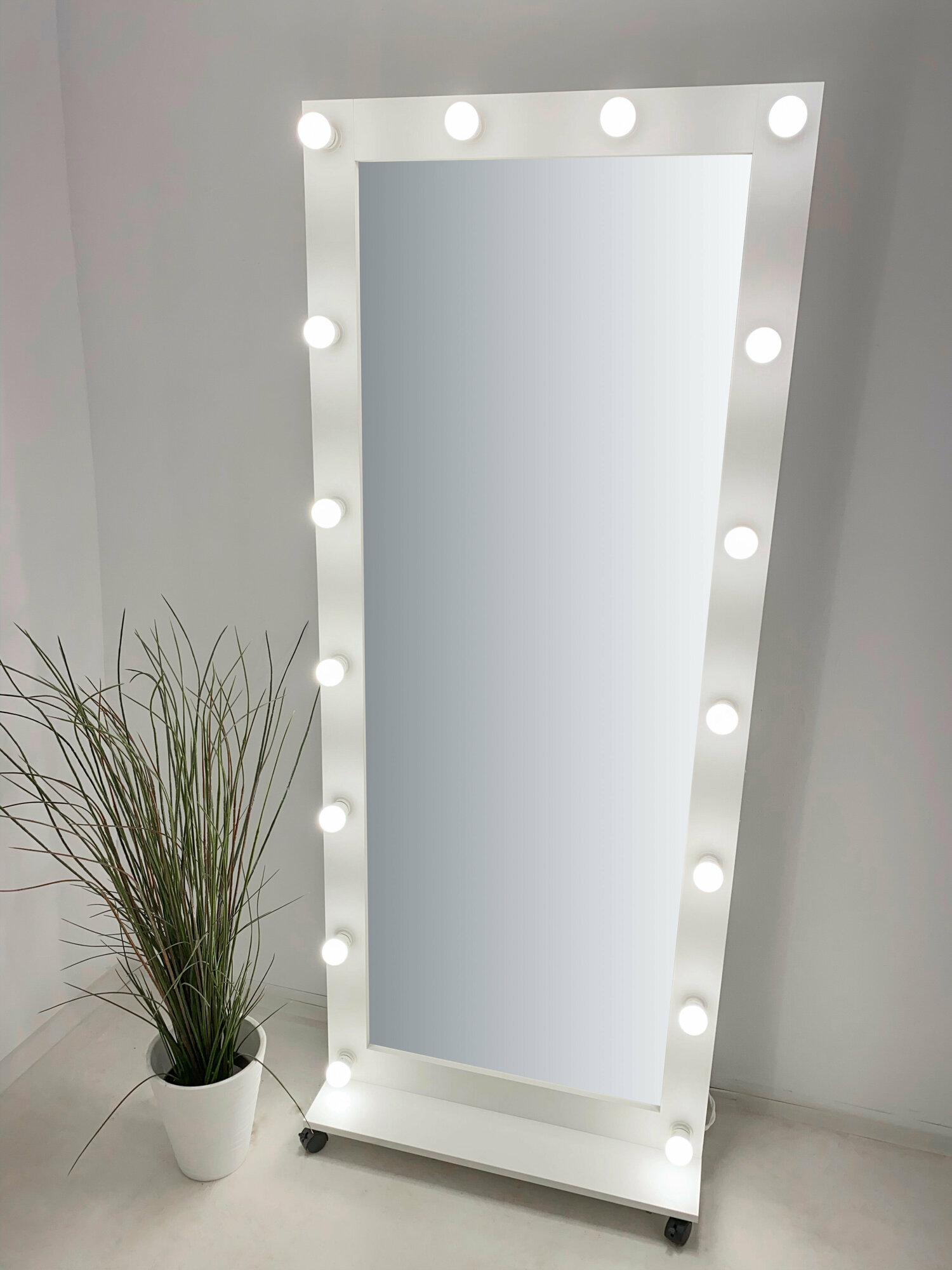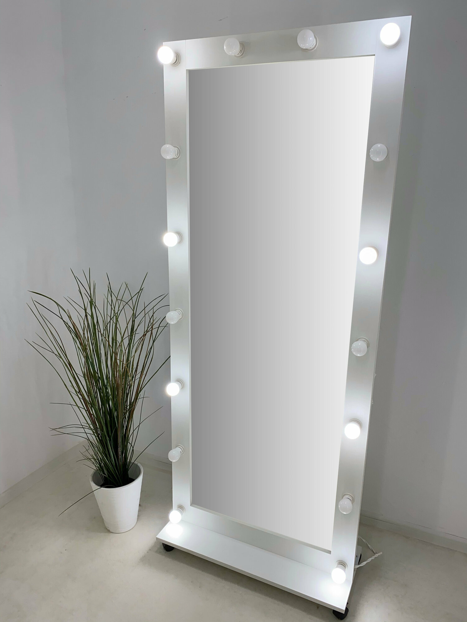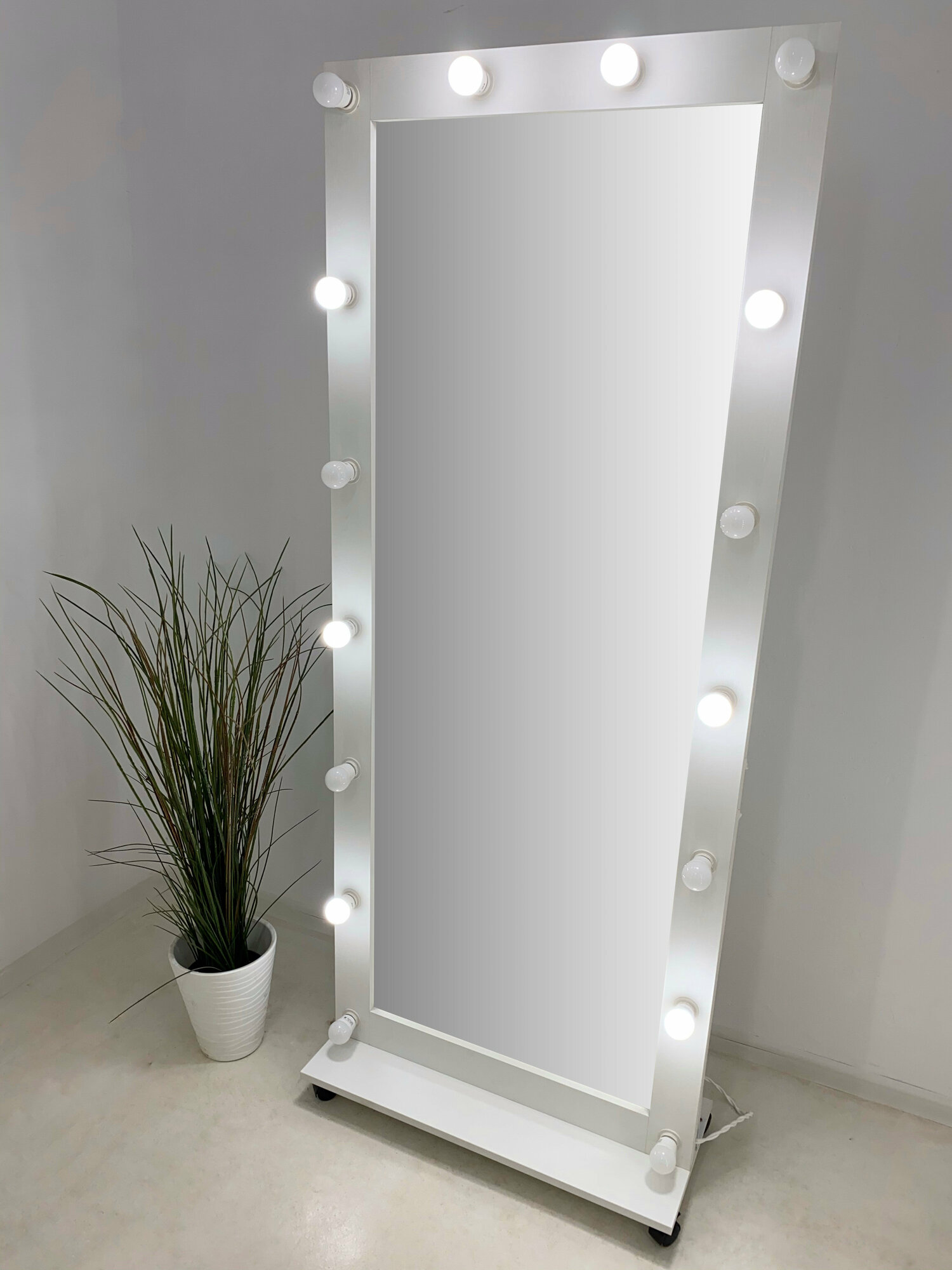 Гримерное зеркало с лампочками BeautyUp 182/73 на подставке интересное: