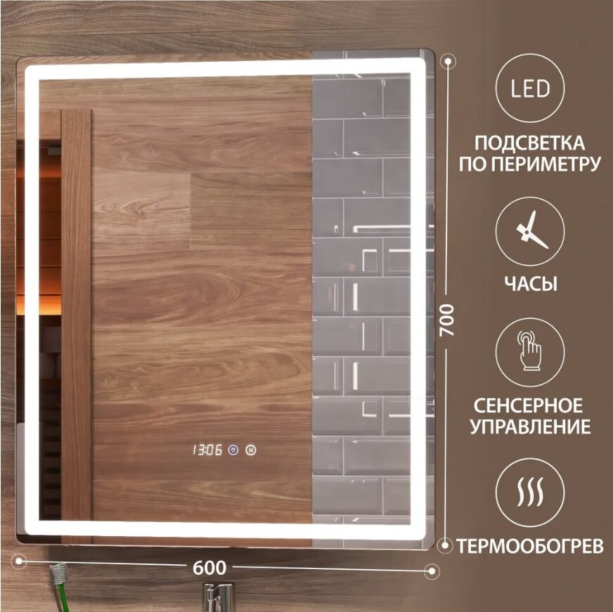 СохранитьЗеркало 60х70 см настенное в ванную с подсветкой LED, часы и подогрев OLEVARO DAMON LUXE z.DAM.60.LUXE интересное: